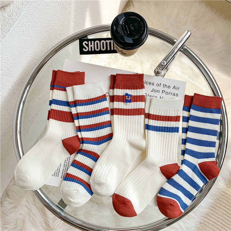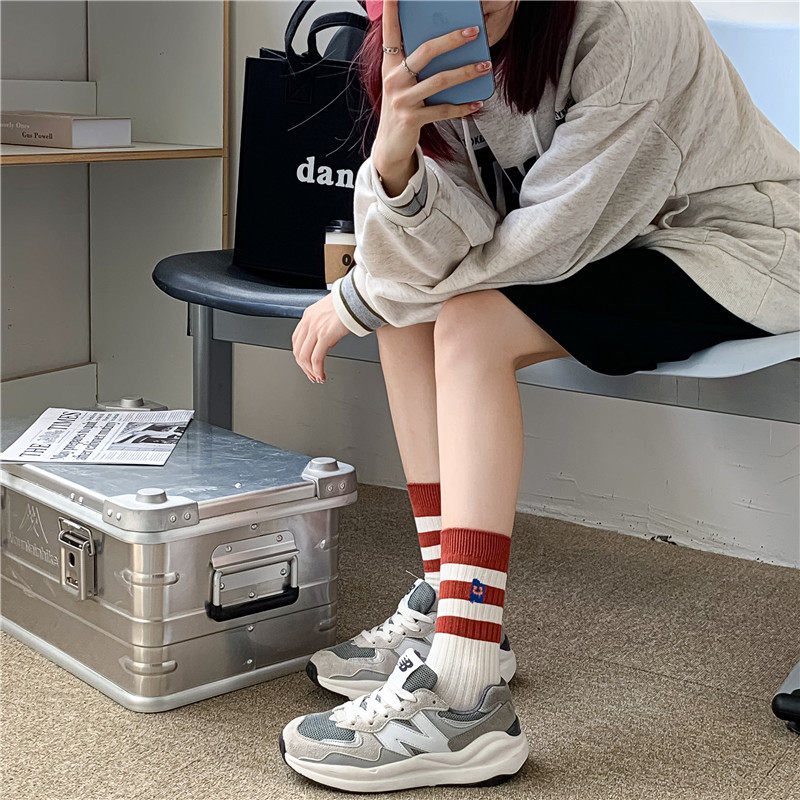 Ретро военно-морские красные осенние модные японские гольфы, спортивные носки, средней длины