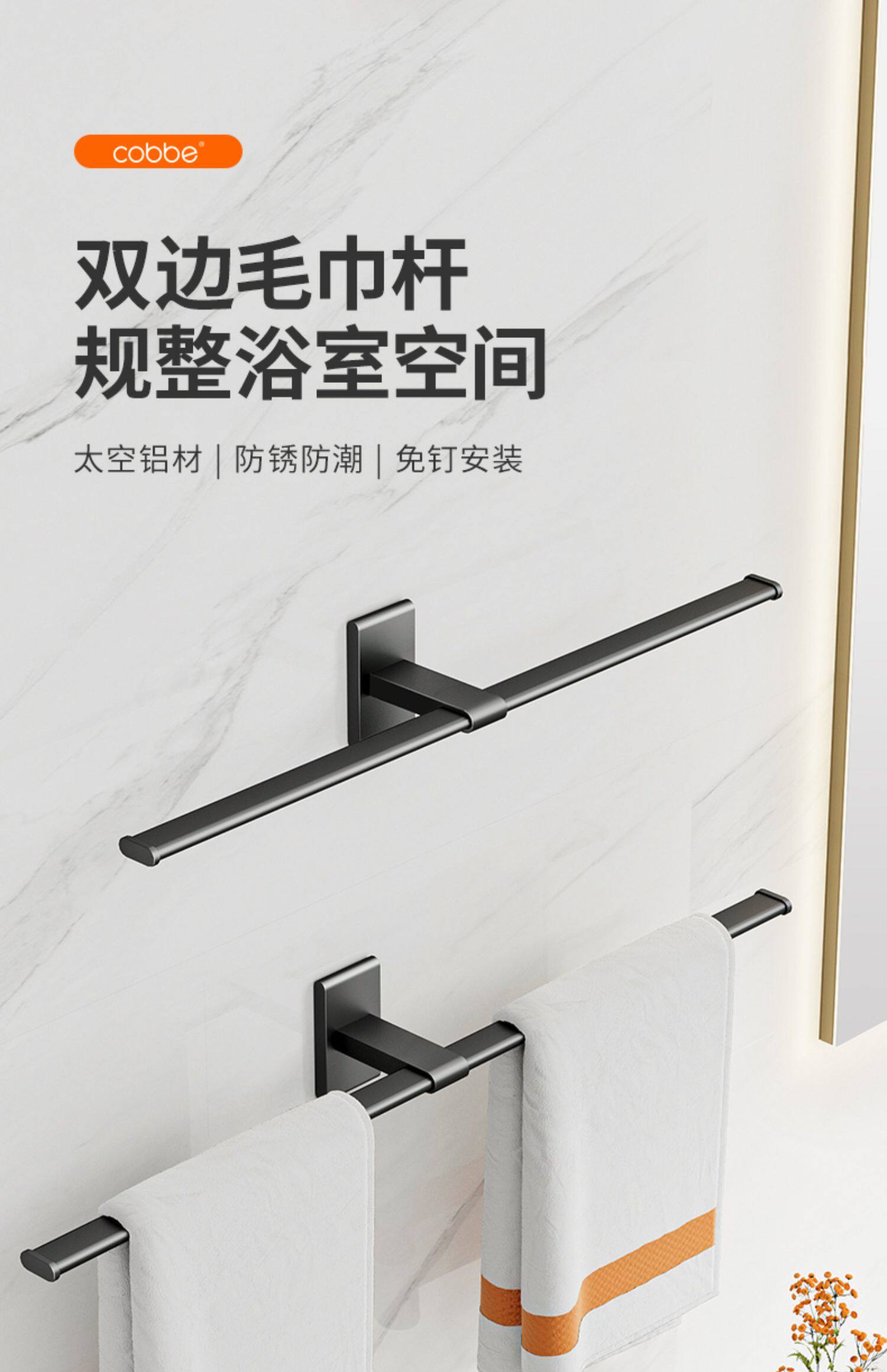 Кабер полотенце полотенце туалетное полотенце подставка -без пространства пространственное алюминиевое алюминиевое простые двусторонние стены ванной комнаты, висят в ванной комнате