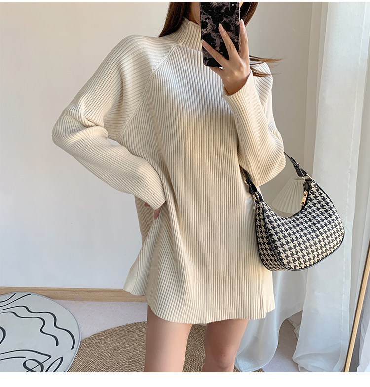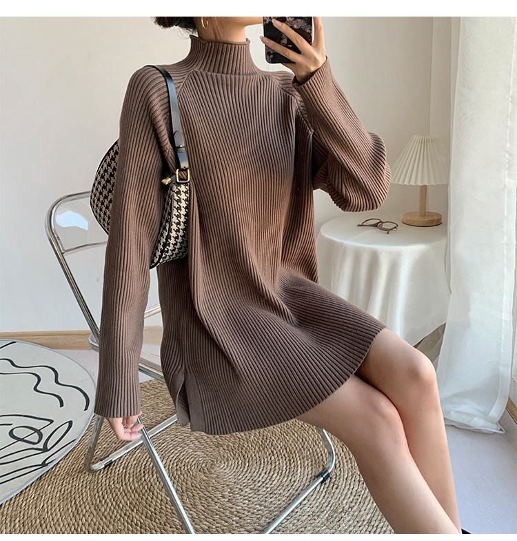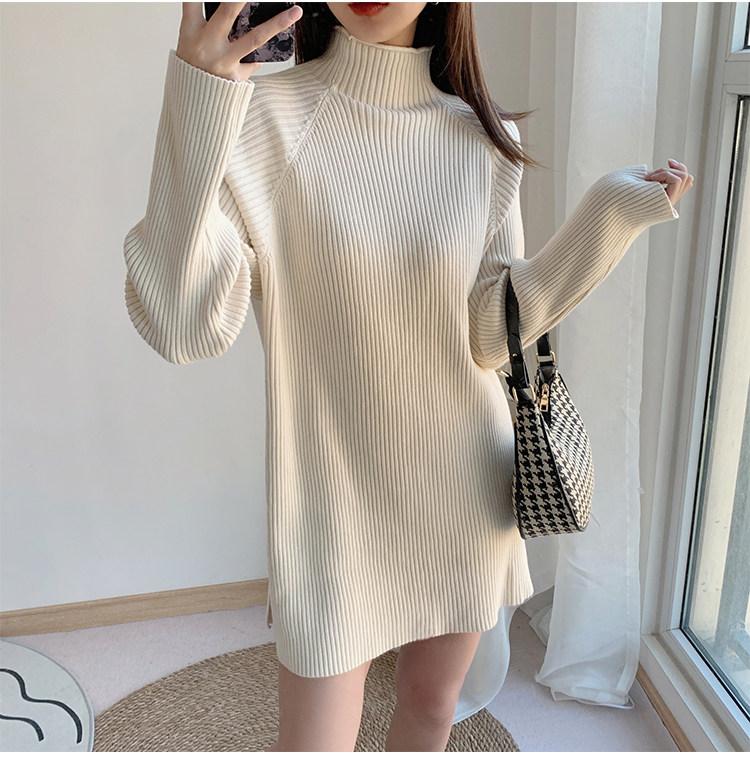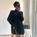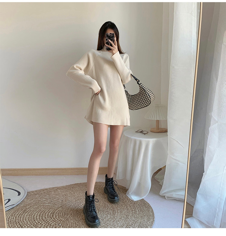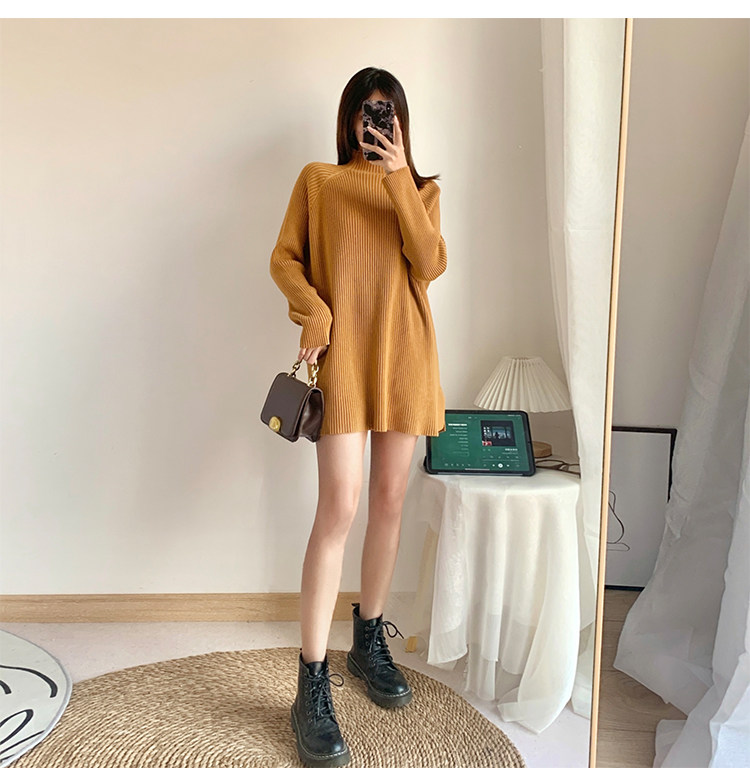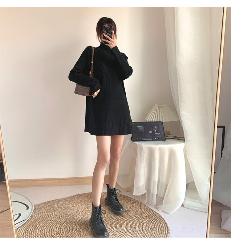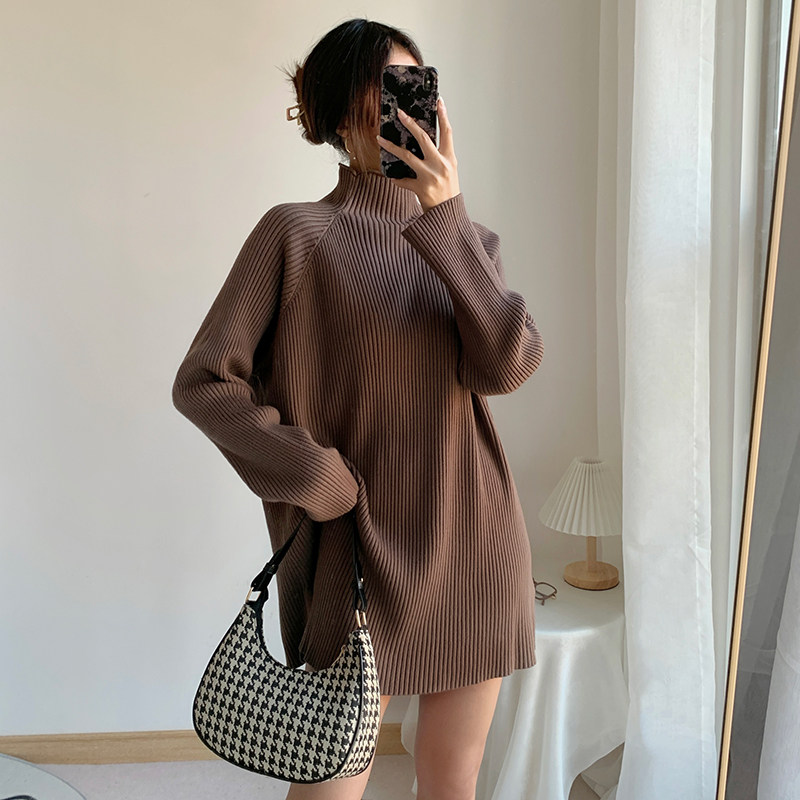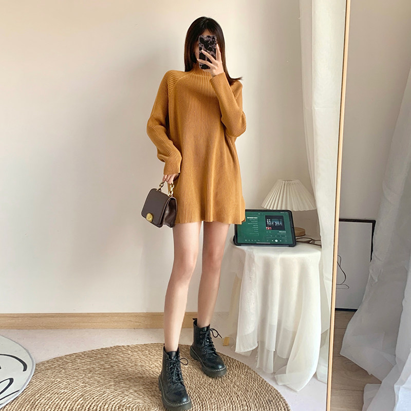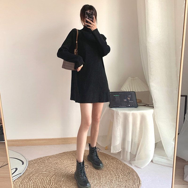 Зимний свитер, трикотажная рубашка, длинное белье для повседневной носки, платье, увеличенная толщина, высокий воротник, средней длины