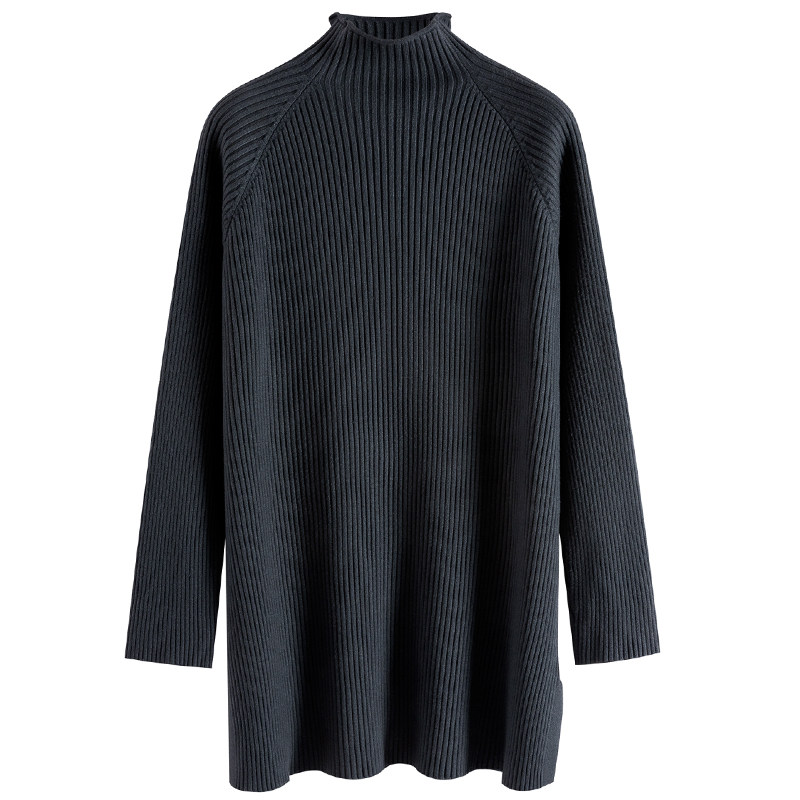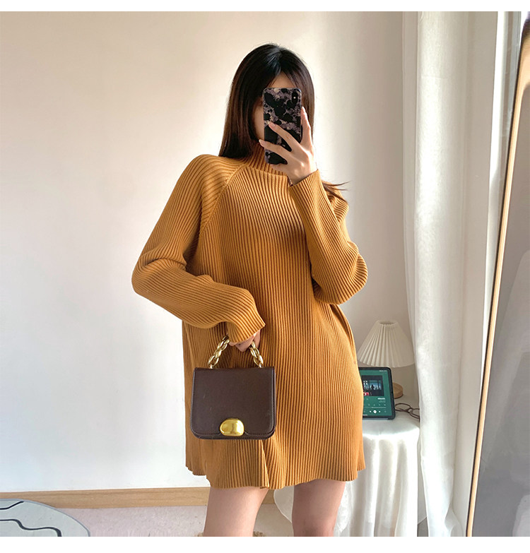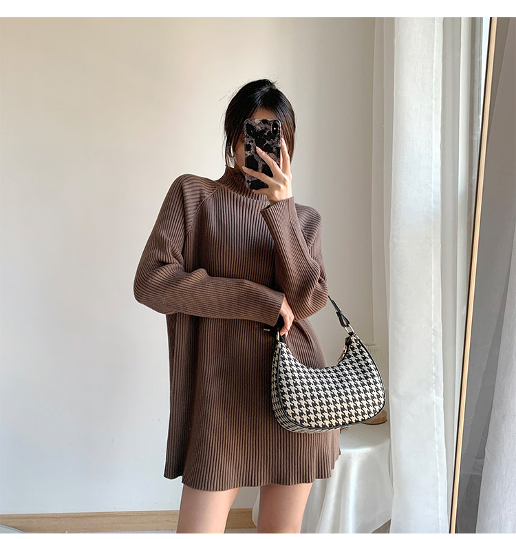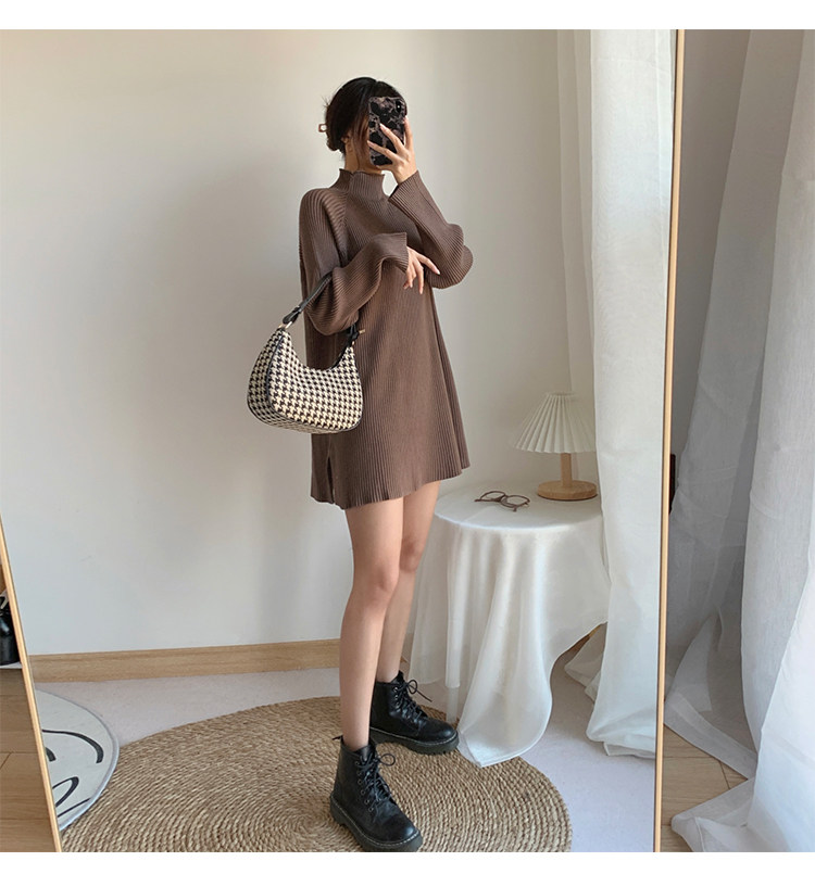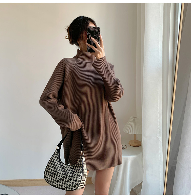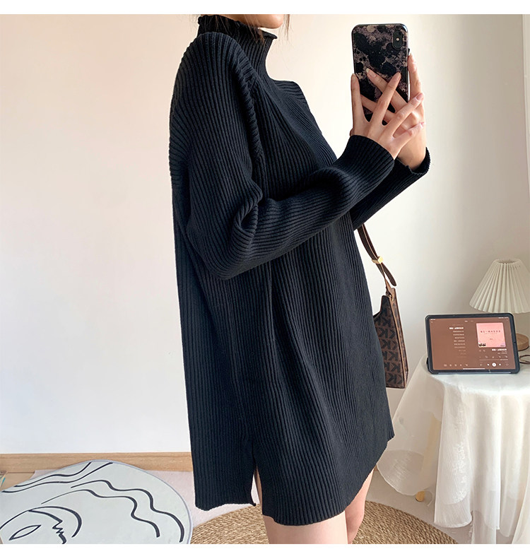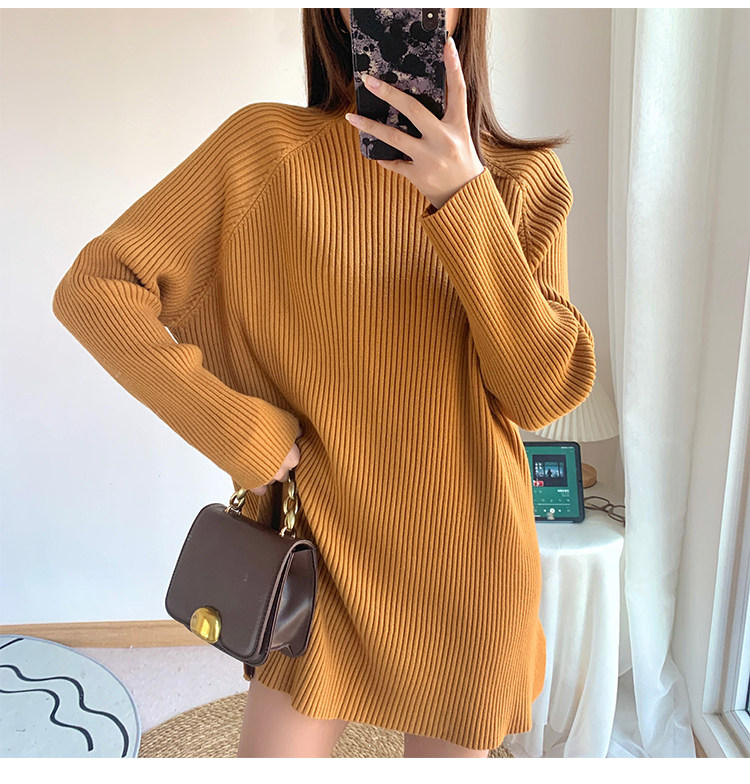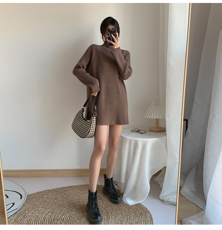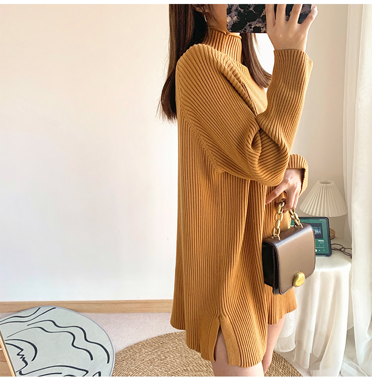Зимний свитер, трикотажная рубашка, длинное белье для повседневной носки, платье, увеличенная толщина, высокий воротник, средней длины