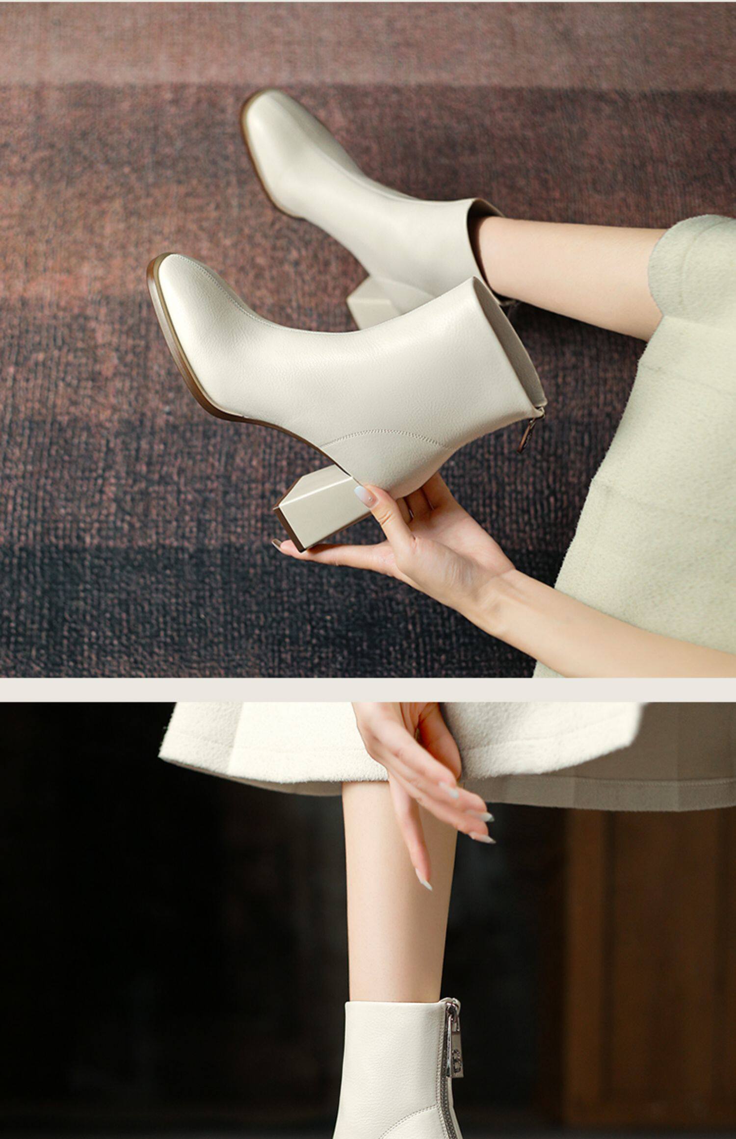 一代佳人 Martens, белые демисезонные короткие сапоги, французский стиль