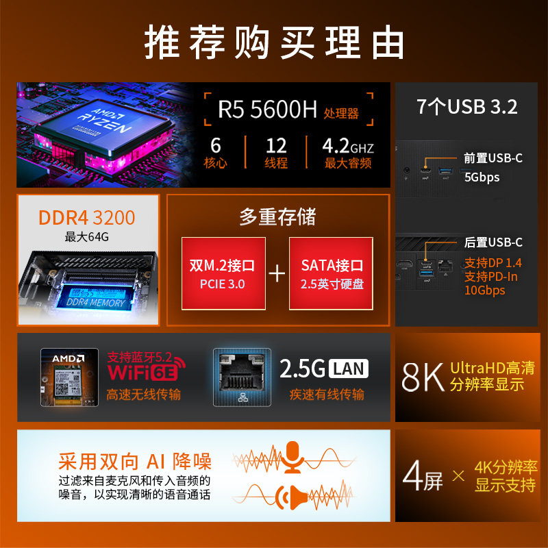 - [Настройка 3] R5-5600H/32G/512G твердотельный + 1T механический/wifi6/WIN11
