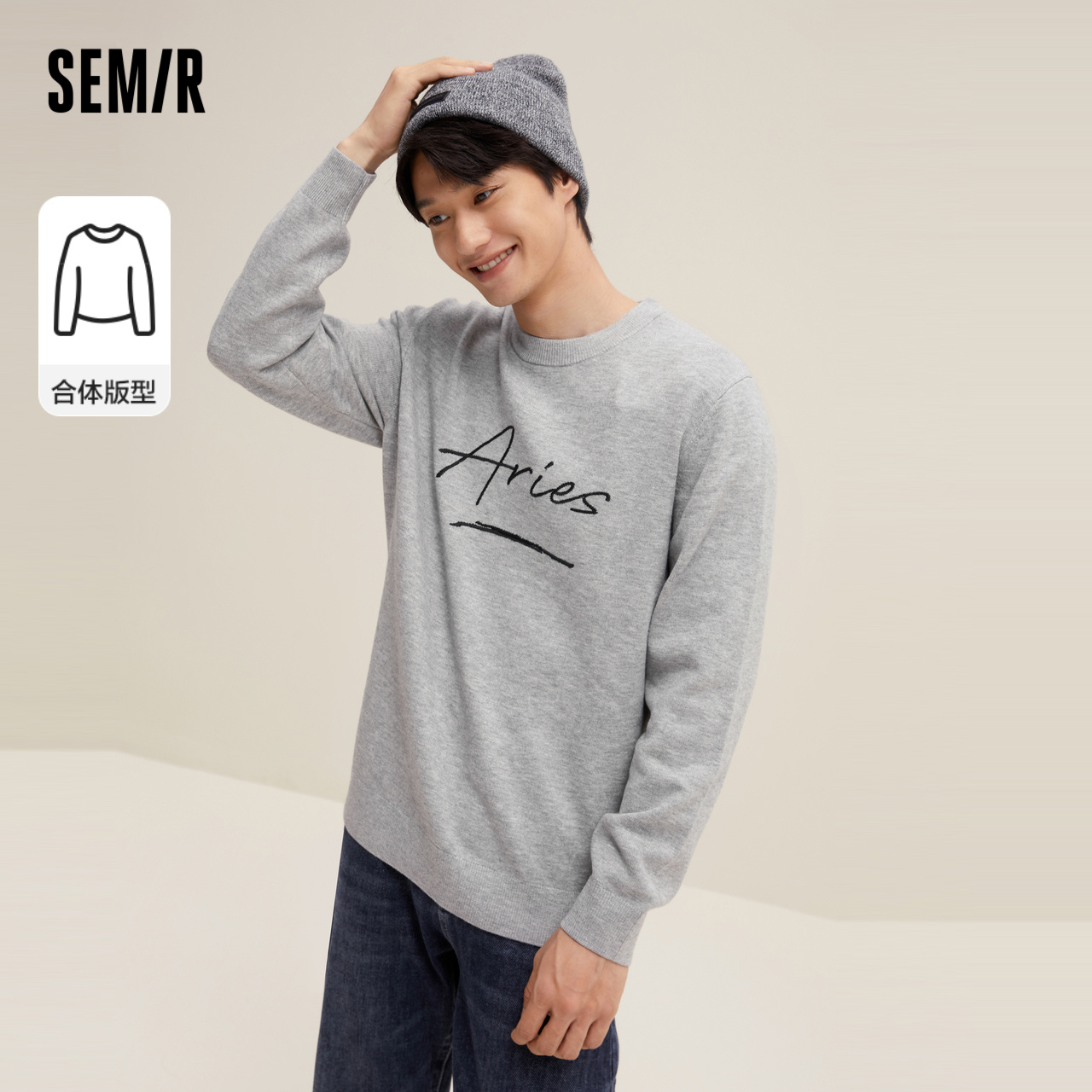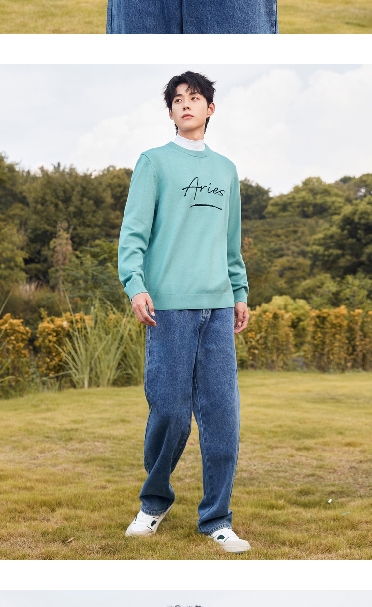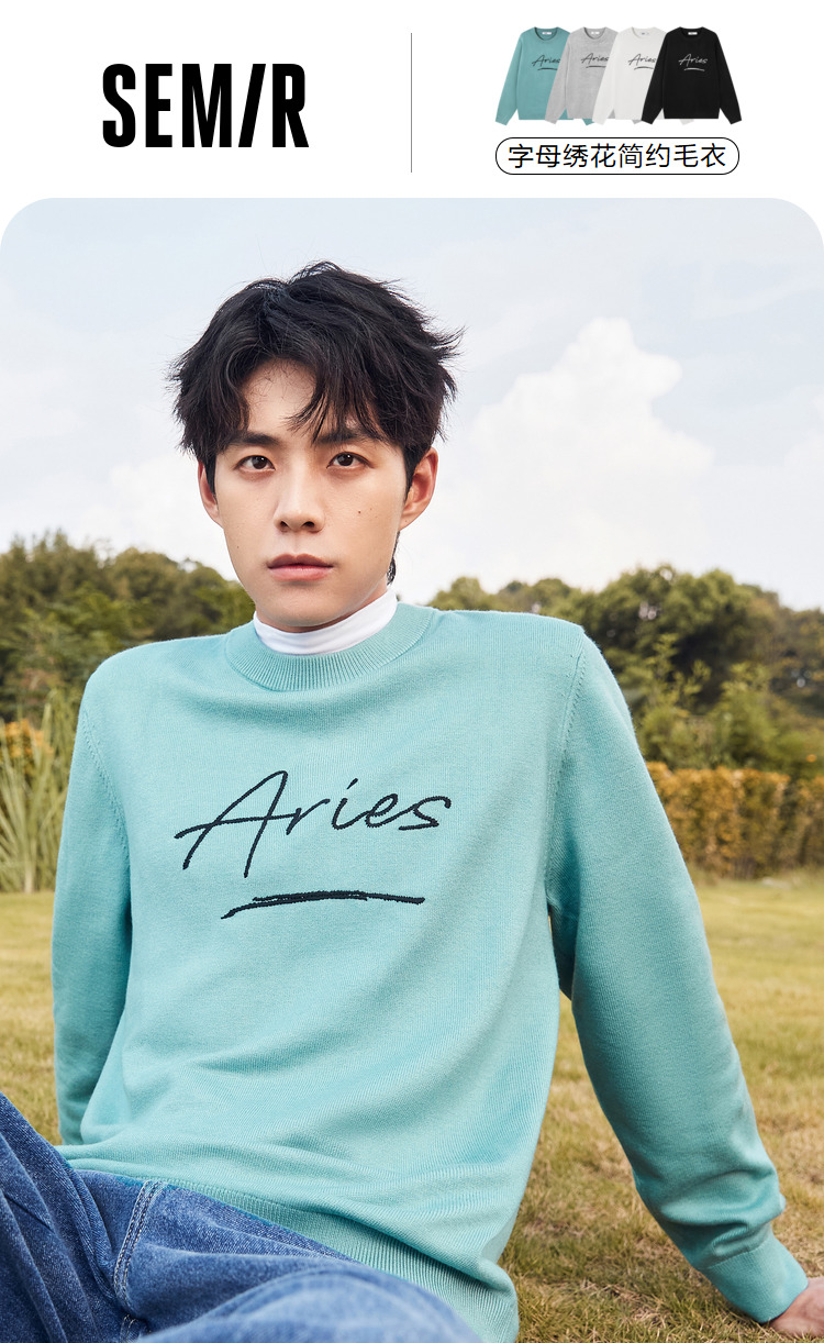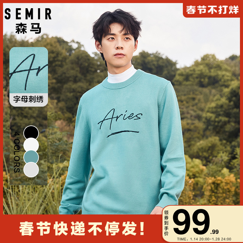 Semir, мужской осенний трикотажный зеленый свитер, круглый воротник, с вышивкой