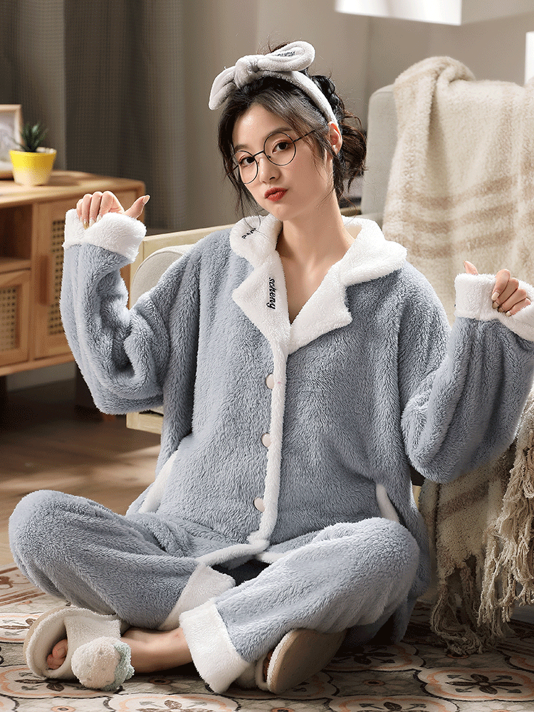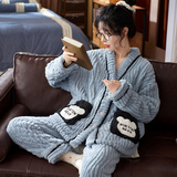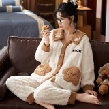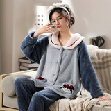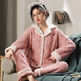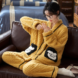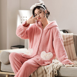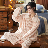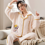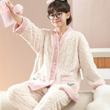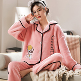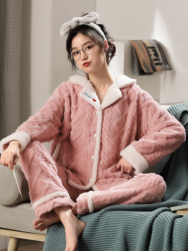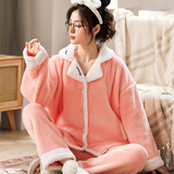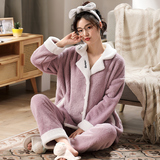 Коралловая бархатная утепленная демисезонная пижама, милый фланелевый комплект