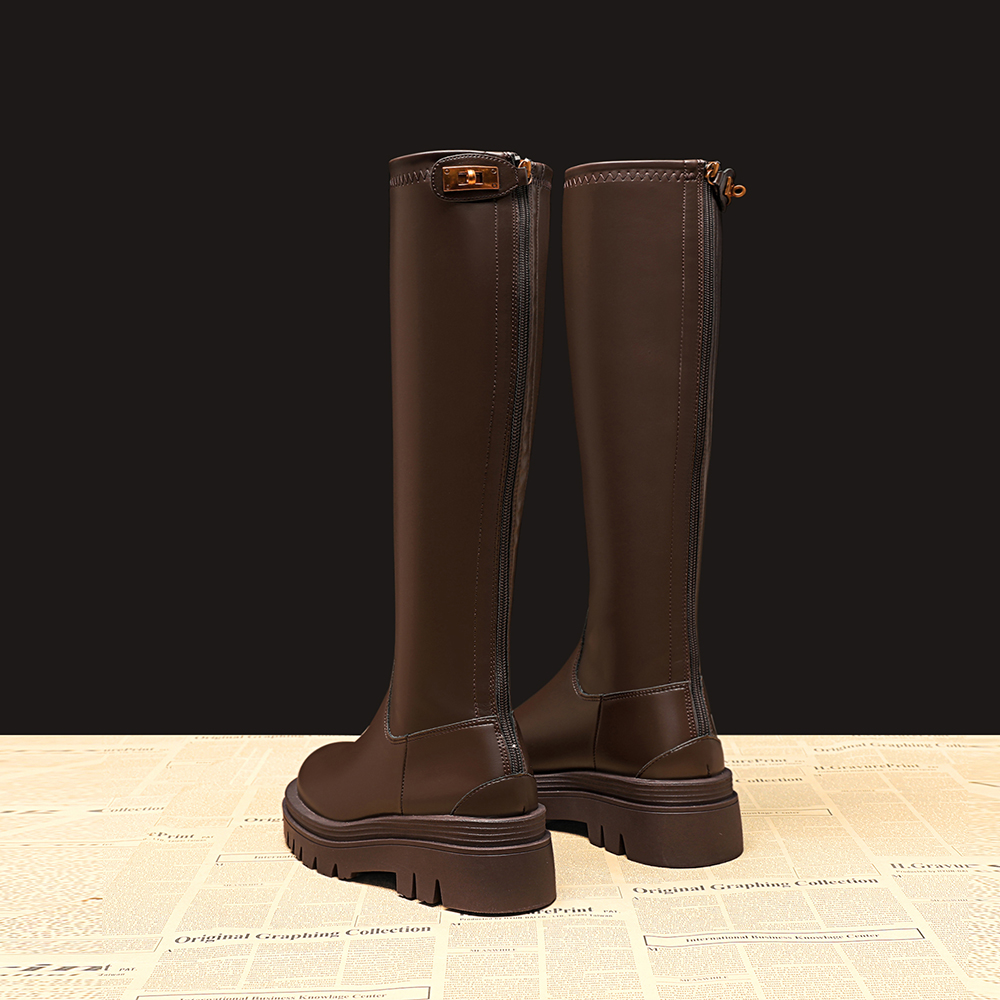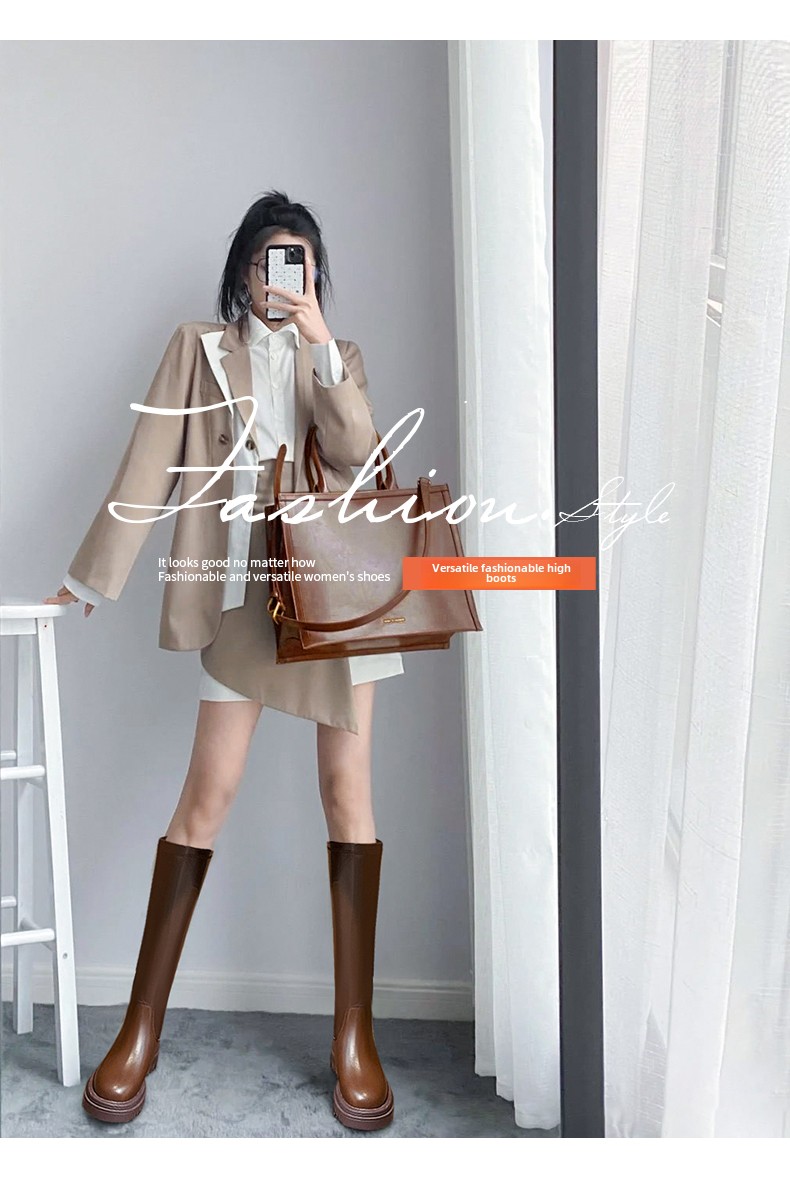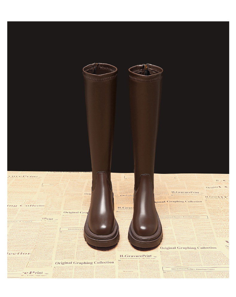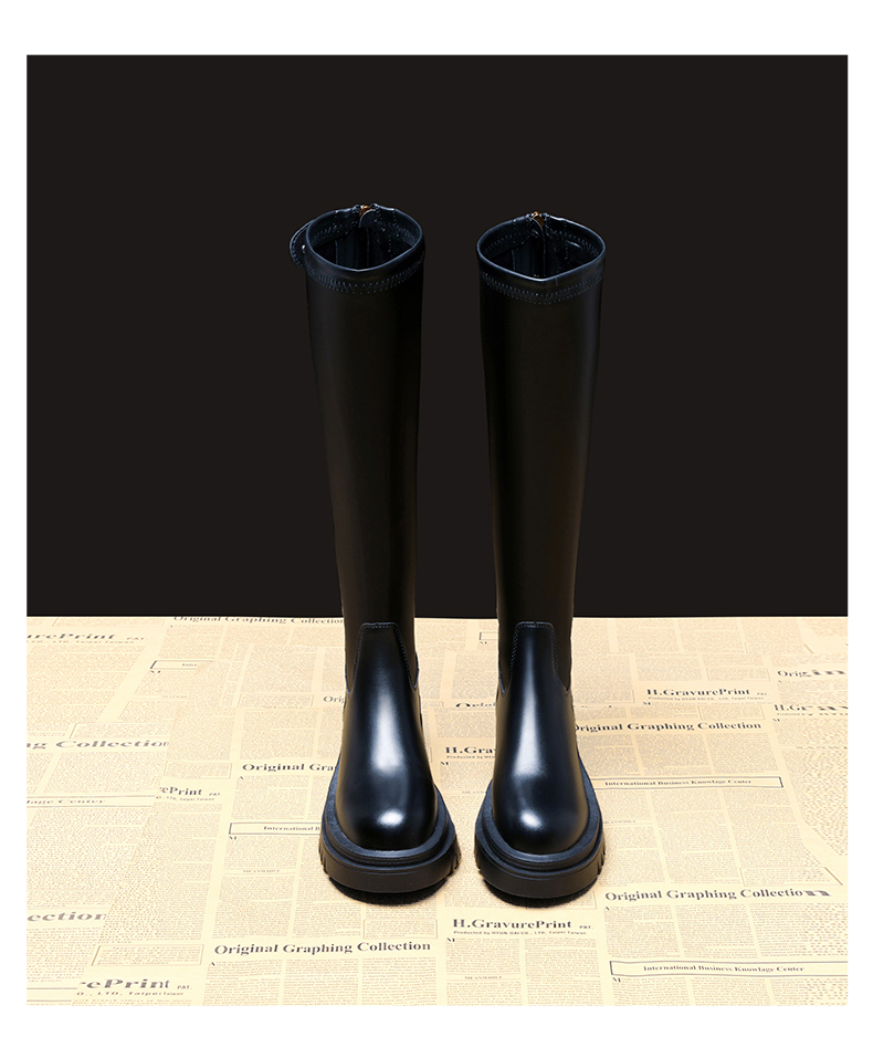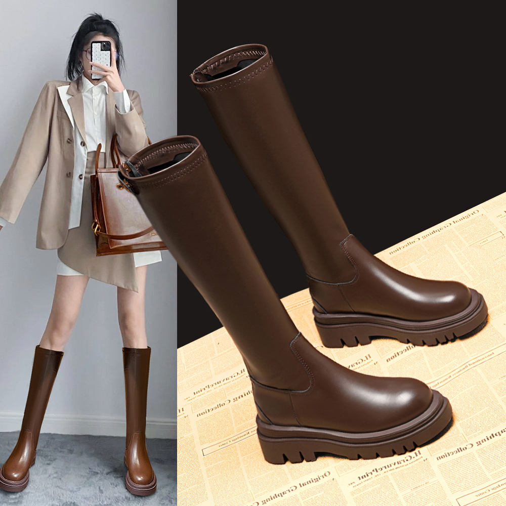 Демисезонные высокие сапоги, ростомер на платформе, тренд сезона
