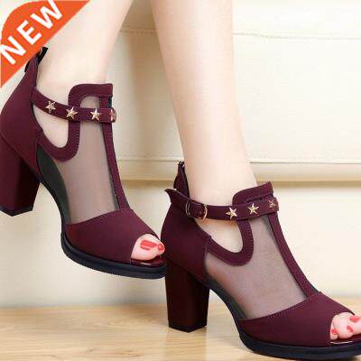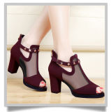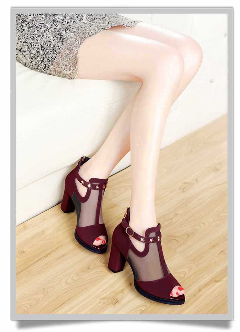 Женщины накачивают высокие толстые черные каблуки, дамская обувь заклепки z z