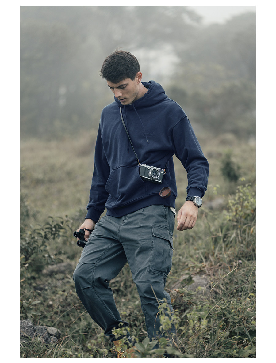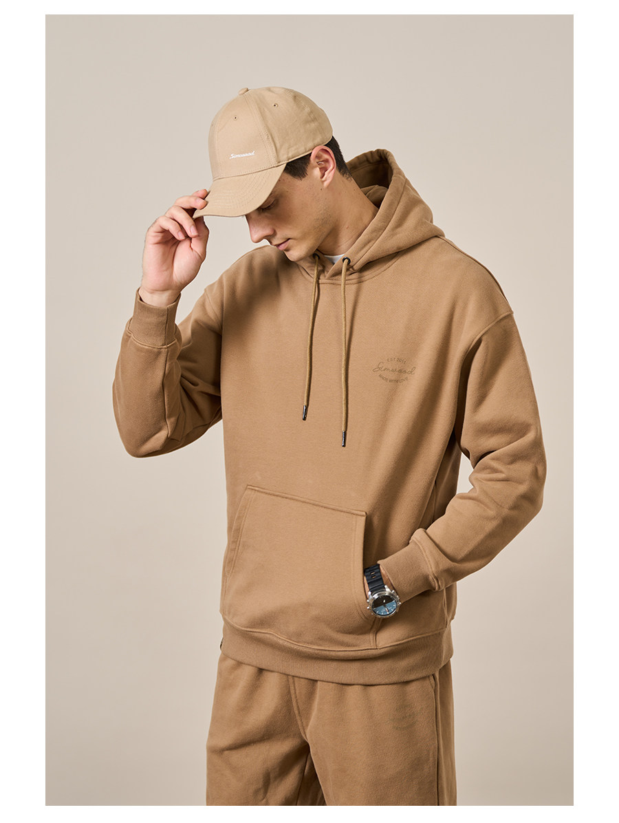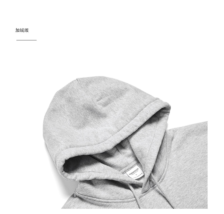 Simwood Мужская одежда Jianmu [свободная версия] Толстовка с капюшоном из тяжелого карбона 390 г из плотного хлопка и флиса для мужчин