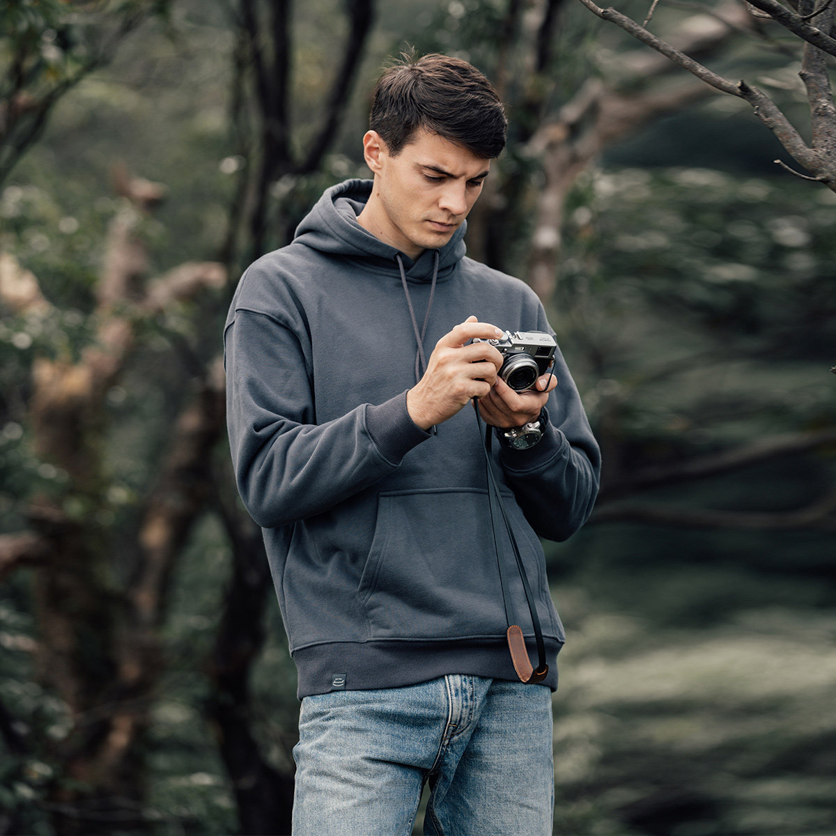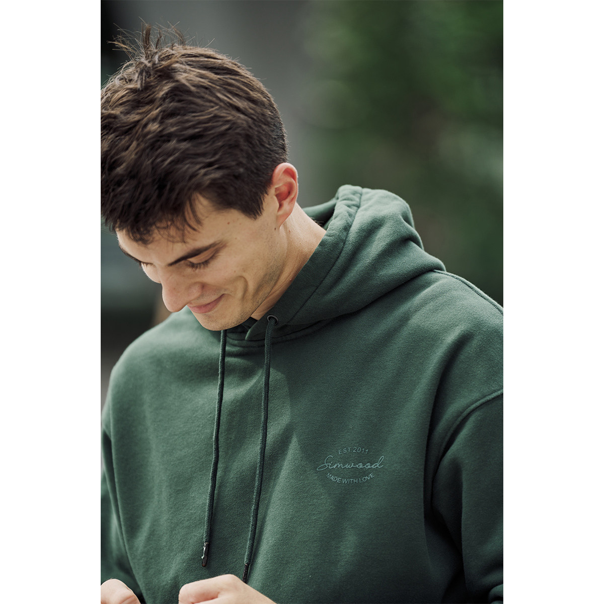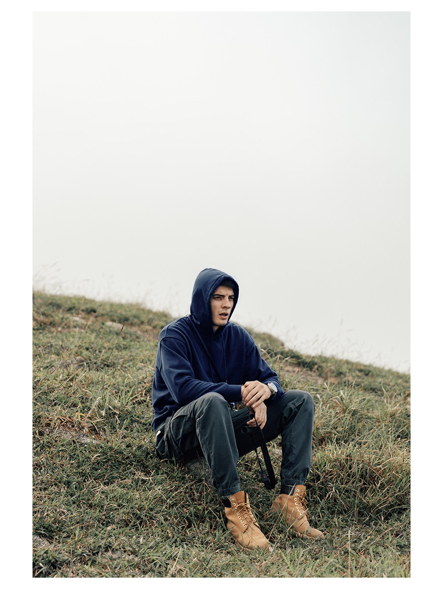 Simwood Мужская одежда Jianmu [свободная версия] Толстовка с капюшоном из тяжелого карбона 390 г из плотного хлопка и флиса для мужчин