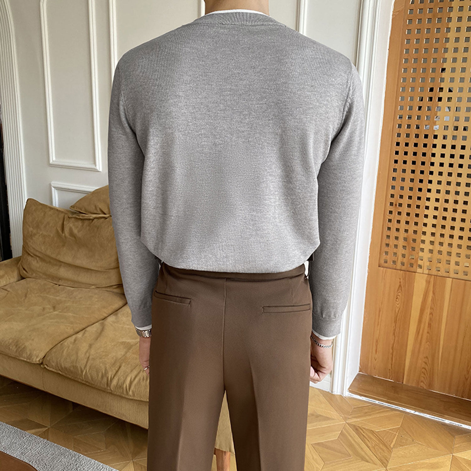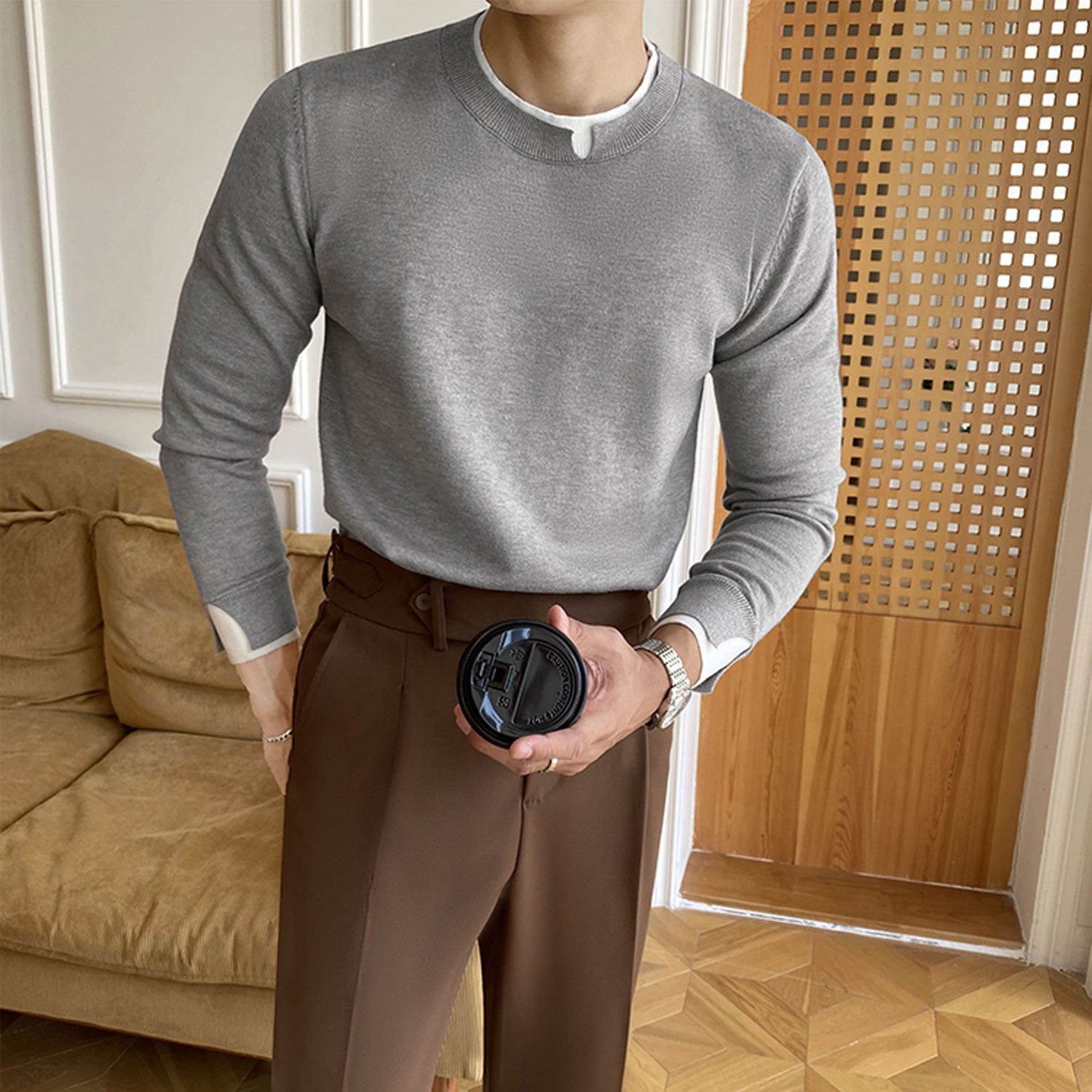 Мужской трикотажный базовый приятный телу свитер с круглым воротником для отдыха, коллекция 2022, в корейском стиле