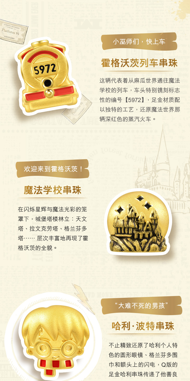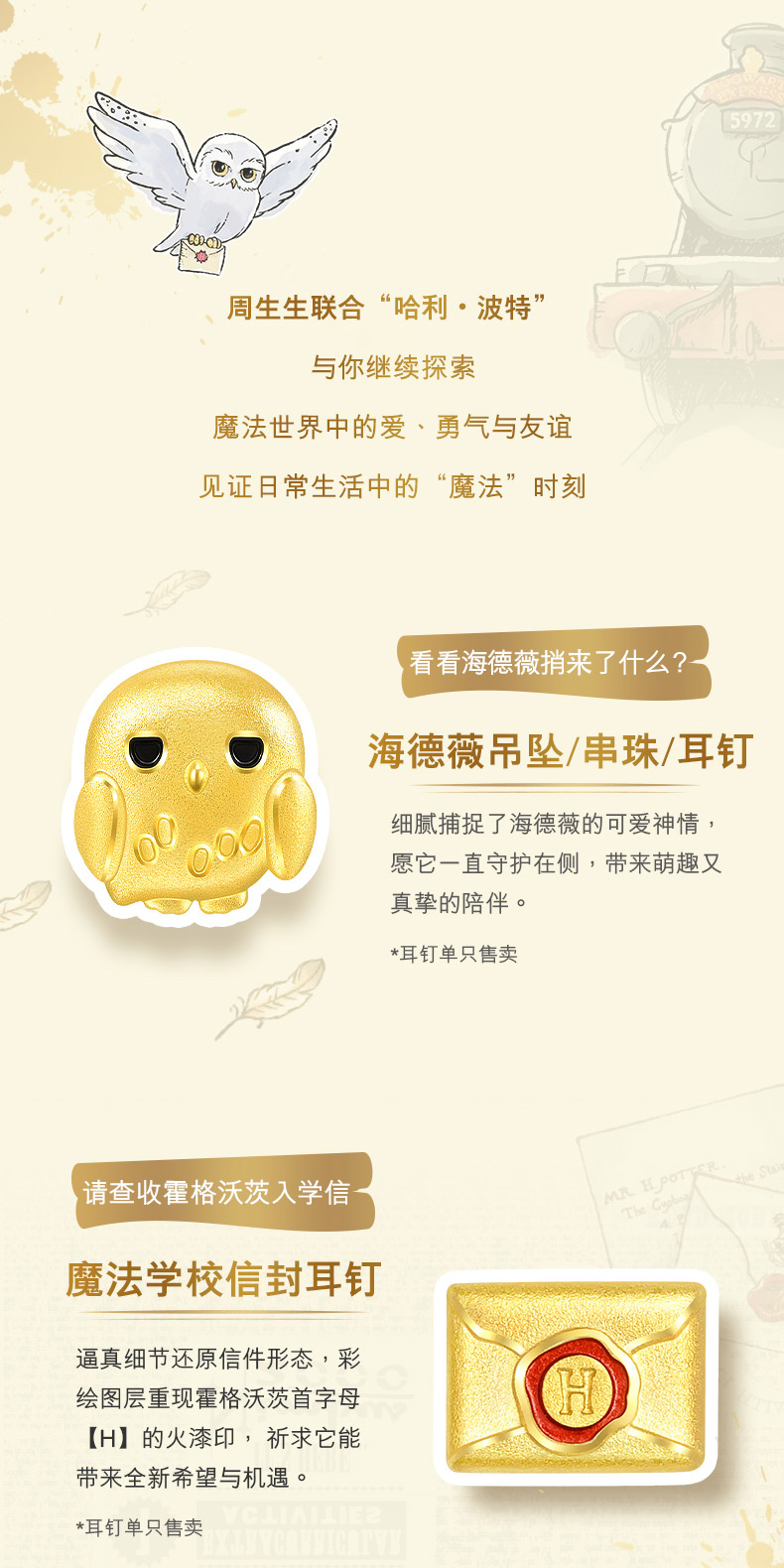 周生生 Гарри Поттер IP -Co -Co -Brice Heidevi Foot Gold Transfer Gearl Gold Bead 93576c