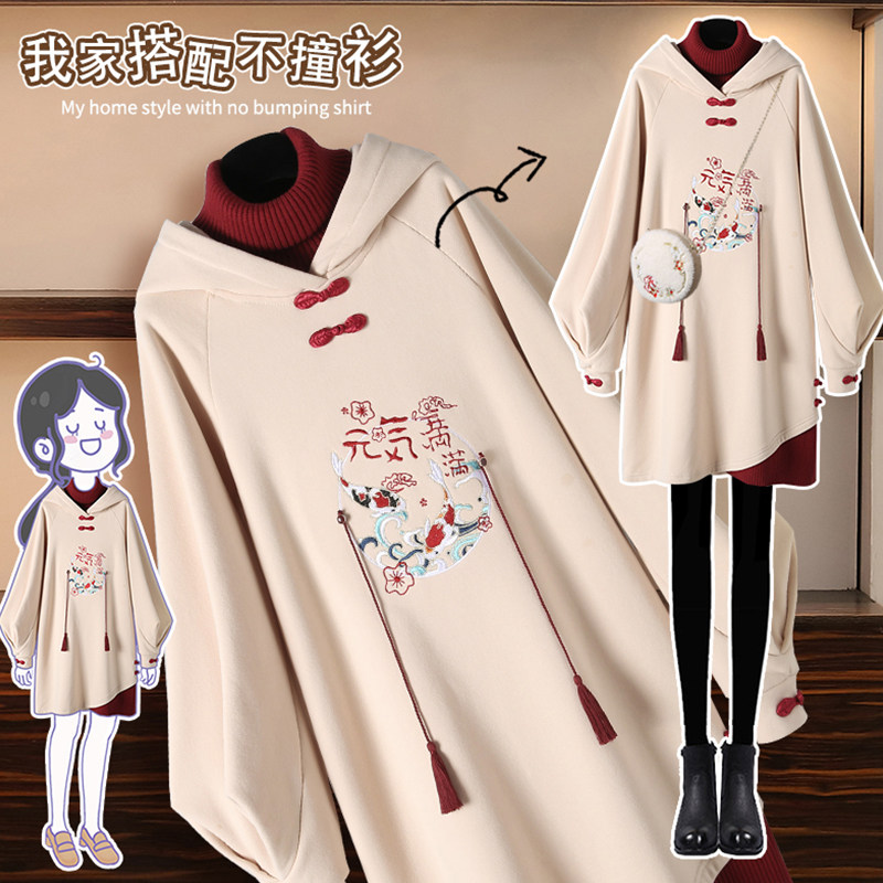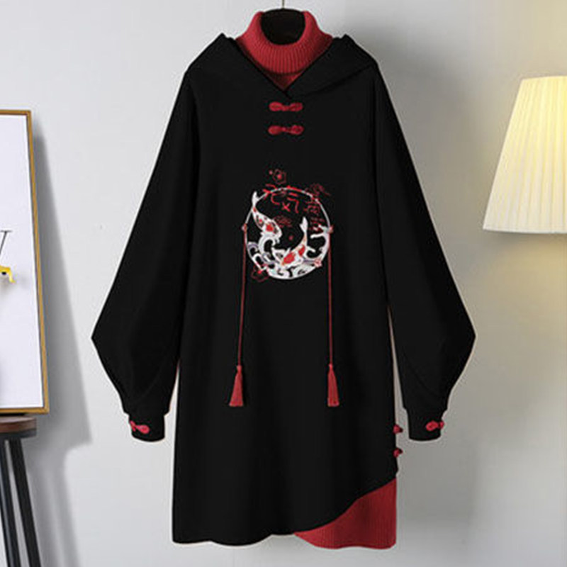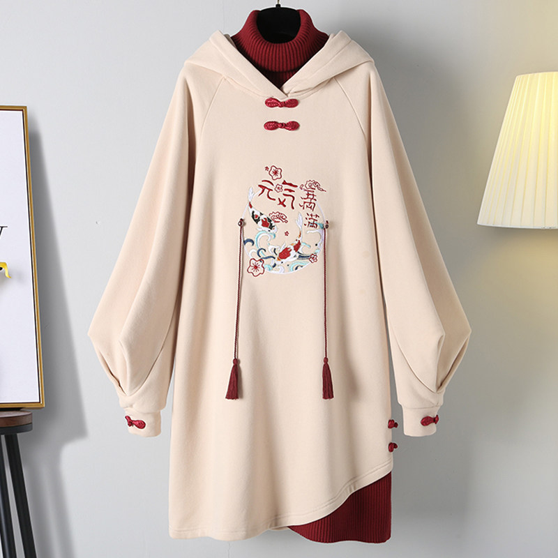 Демисезонное ханьфу, длинная утепленная толстовка, платье, китайский стиль, средней длины