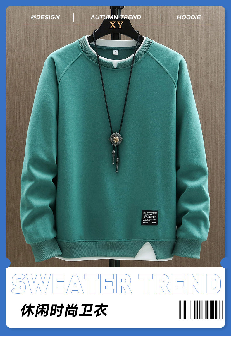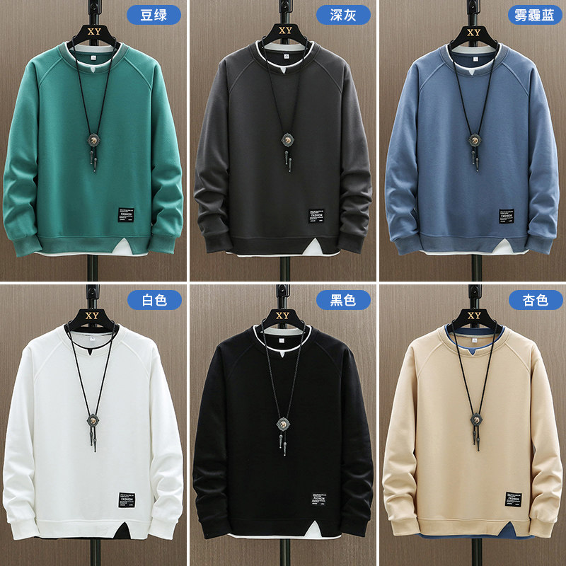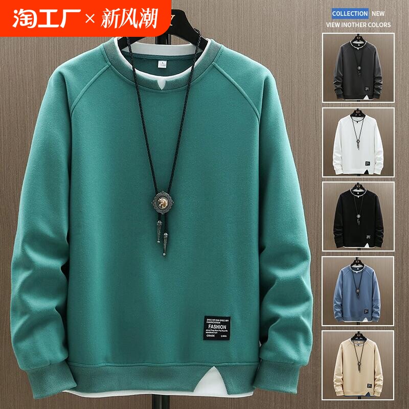 Мужская толстовка, осенний лонгслив, флисовая базовая куртка с круглым воротником