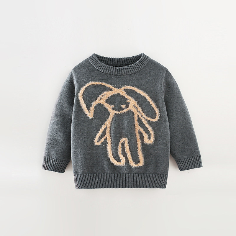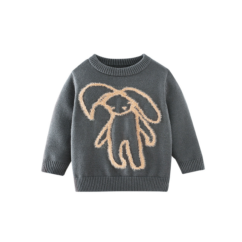 Трикотажный свитер для мальчиков, демисезонная утепленный лонгслив, мультяшный кролик, толстовка, новая коллекция, в западном стиле
