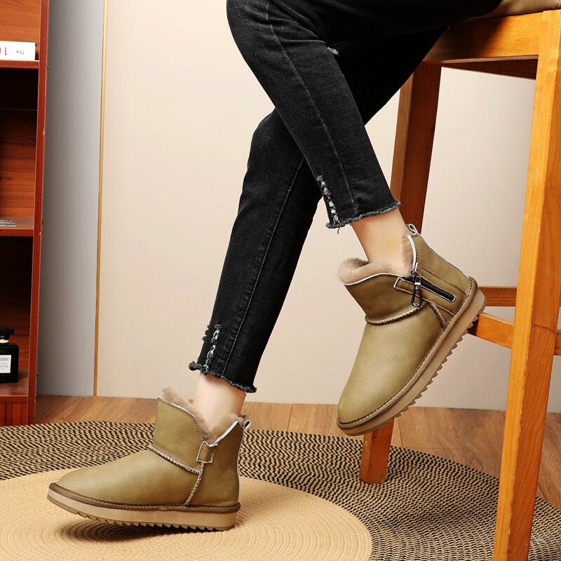 Зимние кожаные утепленные нескользящие сапоги с молнией, средней длины