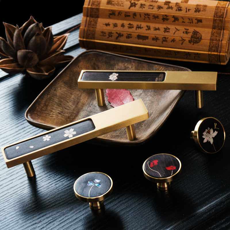 Новая китайская ретро -ретро -инкрустированная медная ручка