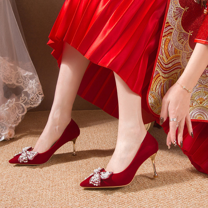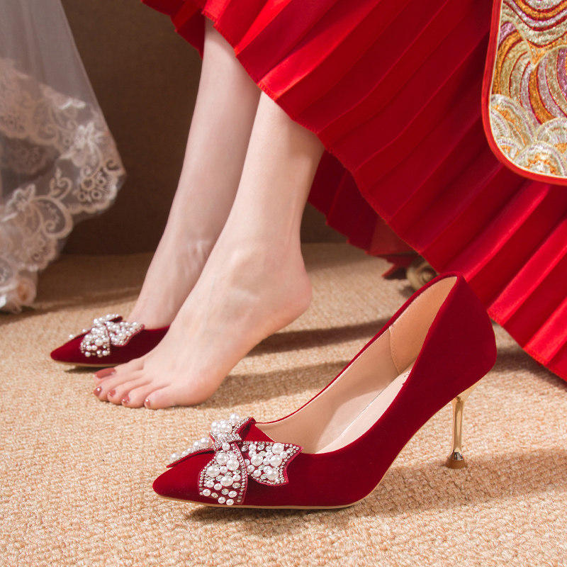 Свадебные туфли на высоком каблуке, обувь, коллекция 2022, китайский стиль, против усталых ног
