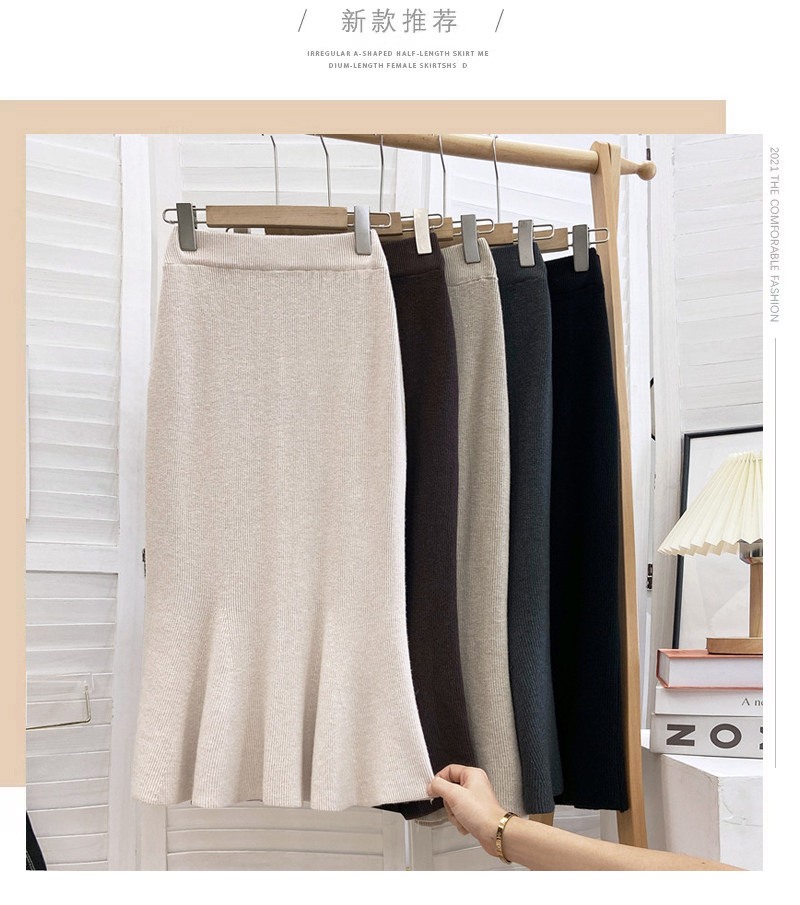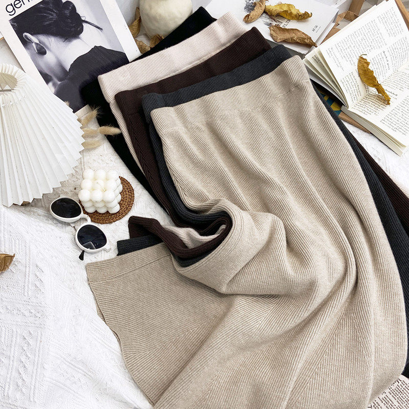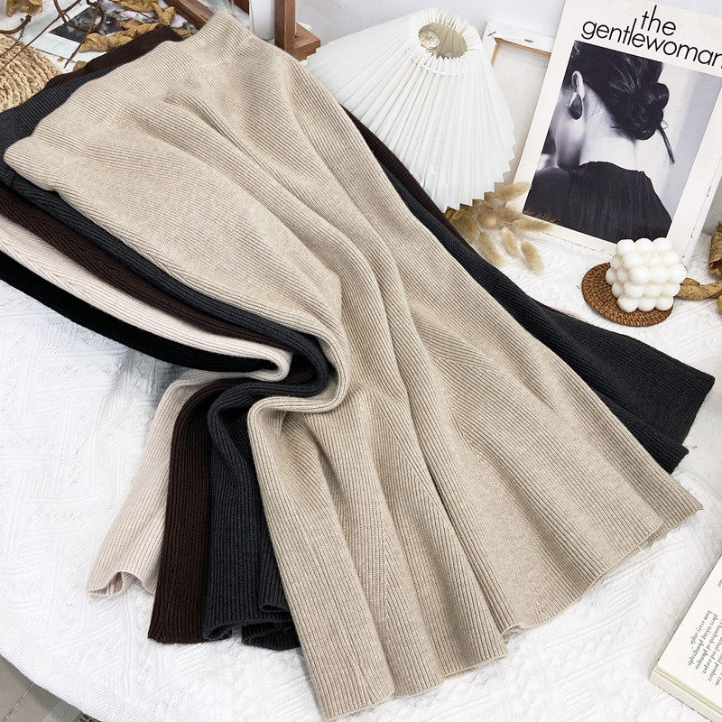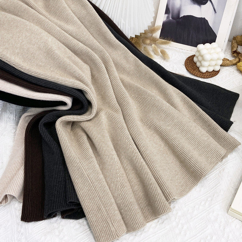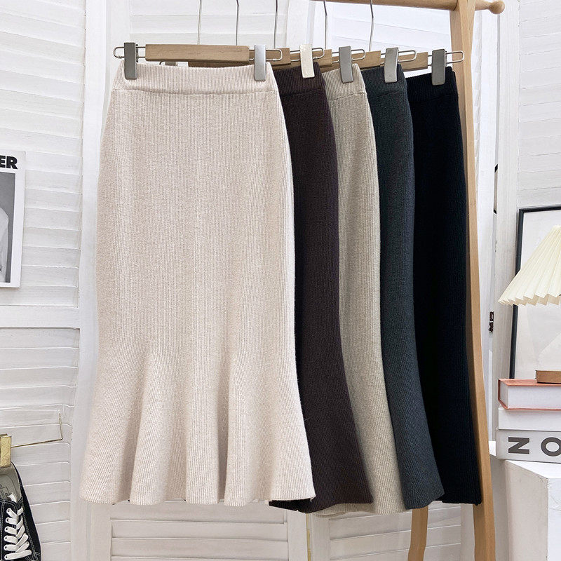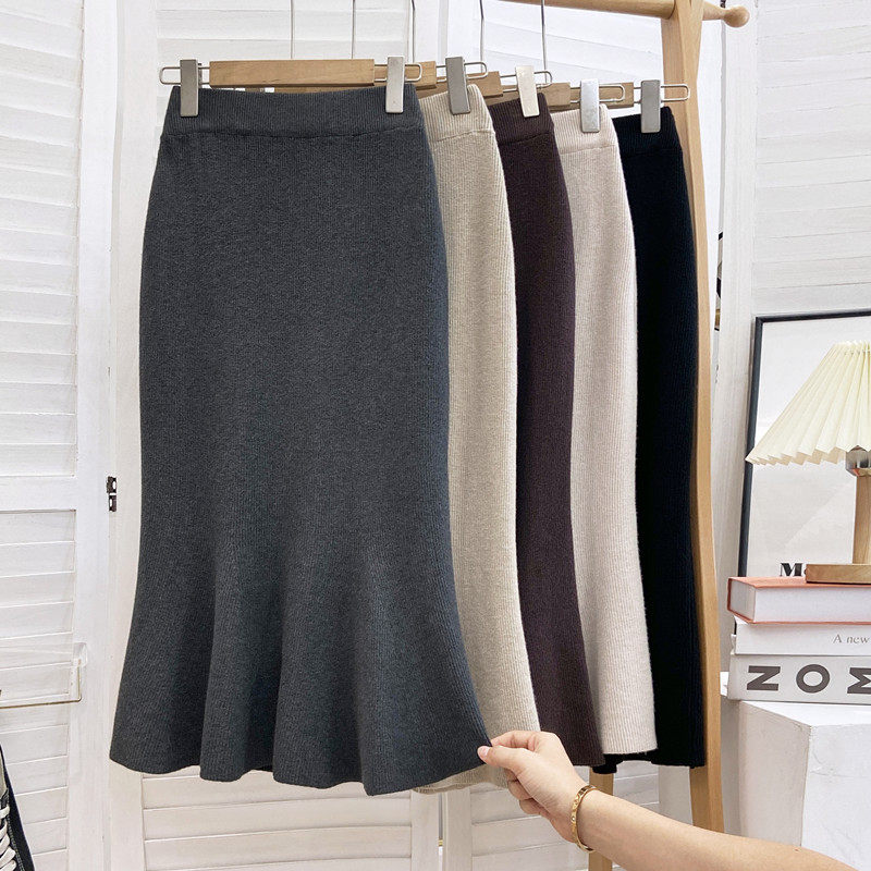 Трикотажная демисезонная шерстяная длинная юбка, рыбий хвост, высокая талия, длина миди, средней длины, с акцентом на бедрах