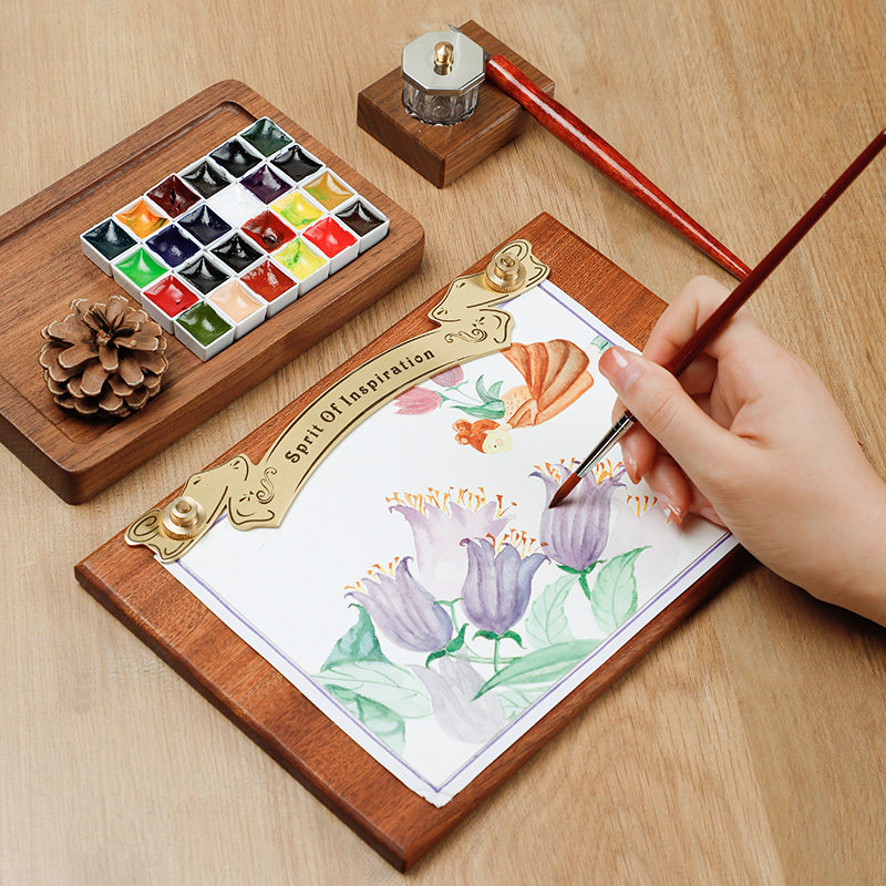Доска для рисования из черного ореха, специальный зажим для мольберта для студентов-художников, латунный зажим для меню, доска для эскизов в стиле ретро, доска с ручной росписью