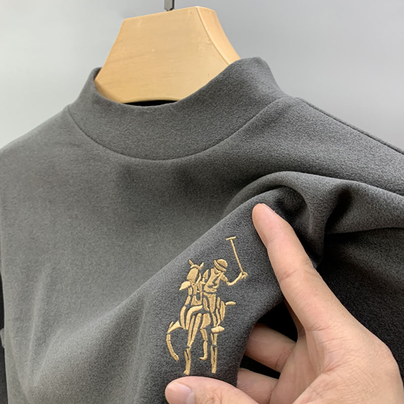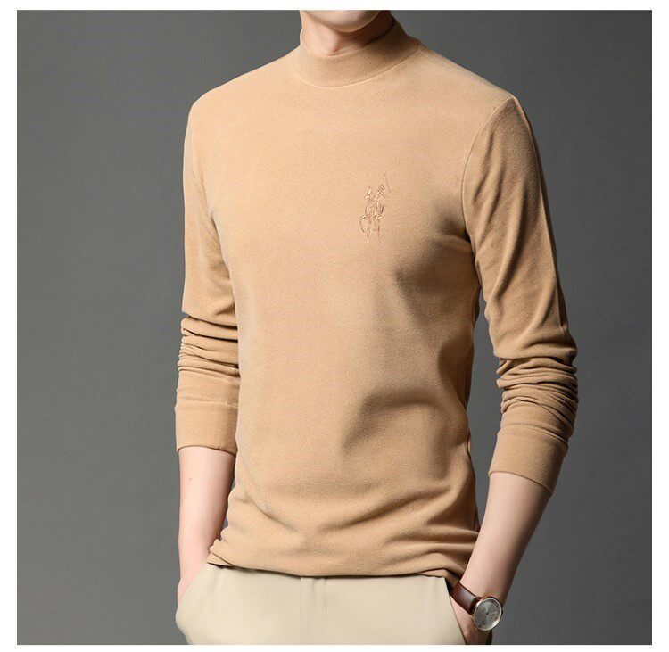 MAROLIO Двусторонний лонгслив, бархатная толстовка, демисезонное бархатное шерстяное базовое приятное телу термобелье, высокий воротник
