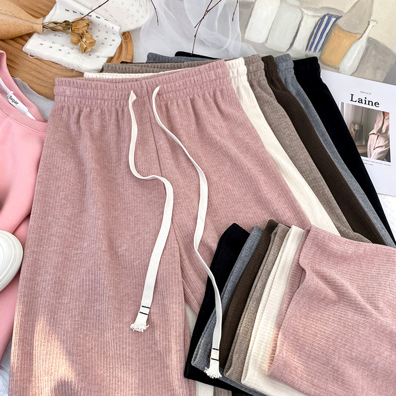 Трикотажная светодиодная лента, бархатные штаны, леггинсы, на шнурках, высокая талия, по фигуре, свободный прямой крой