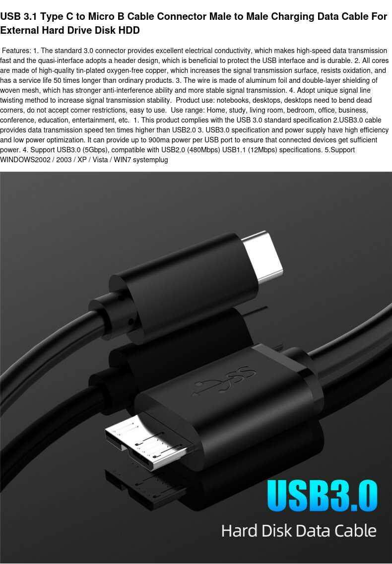 USB 3.1 Тип C к микроб -разъему кабеля мужчина
