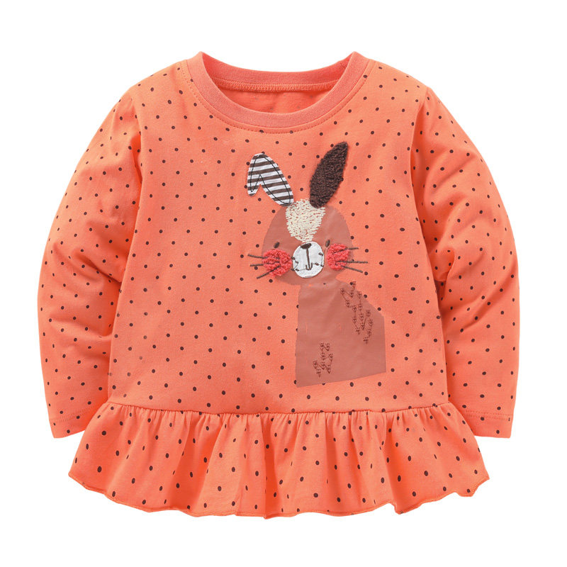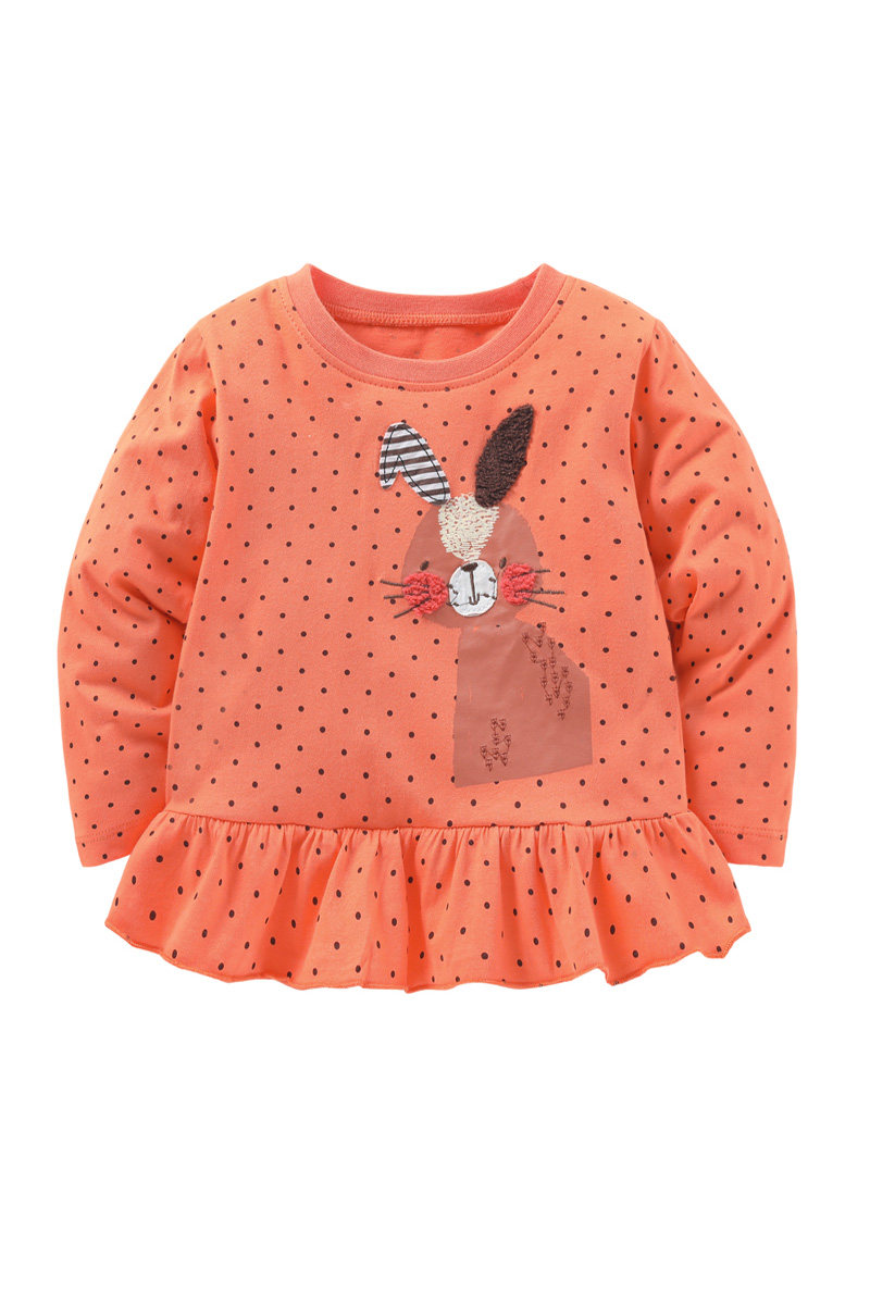 Оранжевый хлопковый лонгслив, нарукавники, футболка для девочек, пластырь, осенний кролик