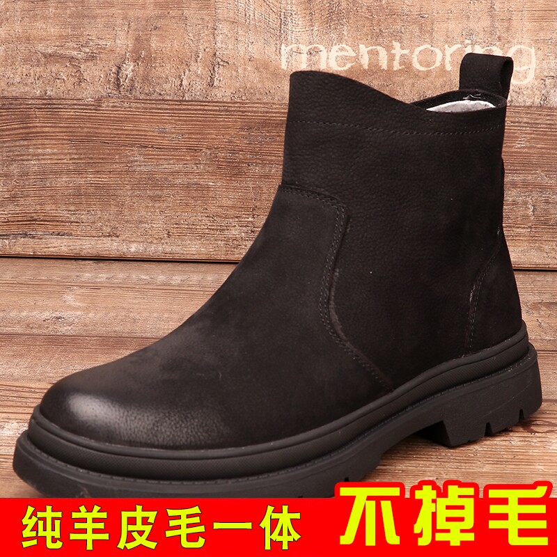 Мужские зимние ботинки на меху в одном, мужские натуральная кожа плюс бархатные утепленные теплые мартены, высокие ботинки, нескользящие хлопковые туфли на толстой подошве