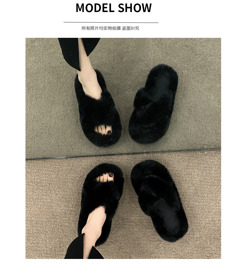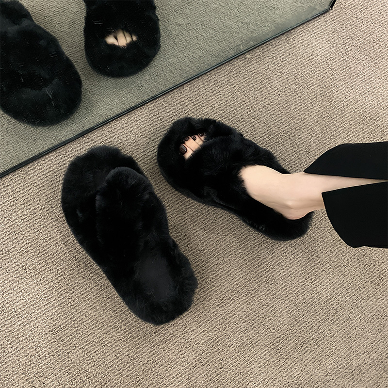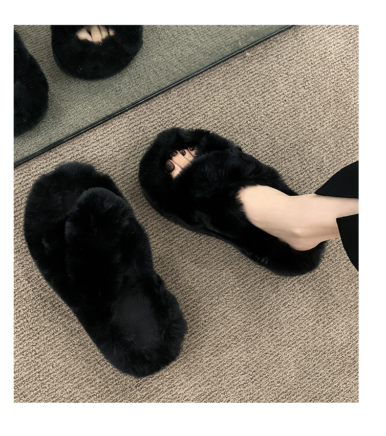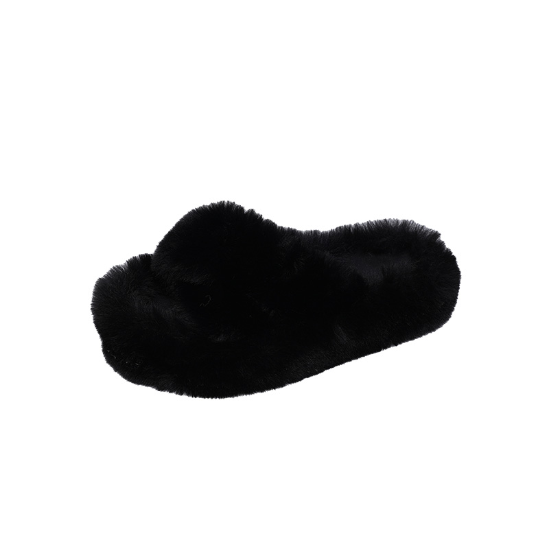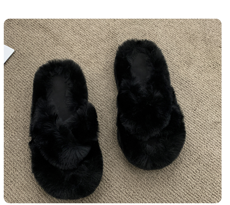 Черные волосатые тапочки женщины, одетые в 2024 году осень и зимний сеть красный европейский взрыв товаров, толстое дно, высокое высокое чувство, ощущение дома плюшевые плюшевые хлопок затягивает
