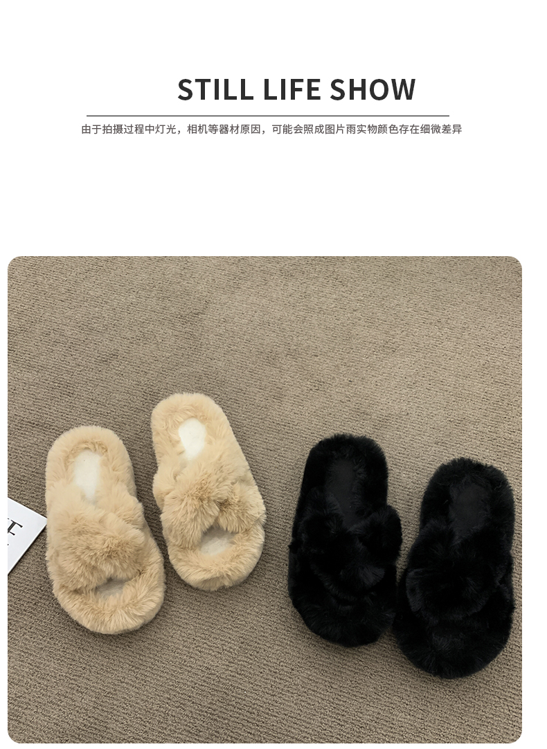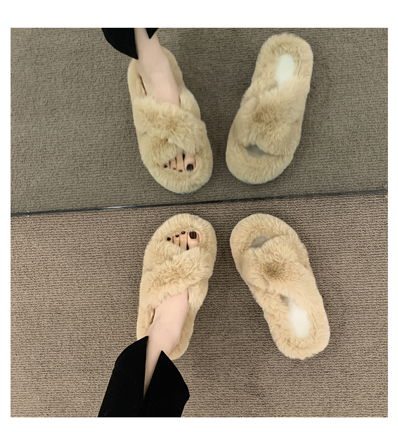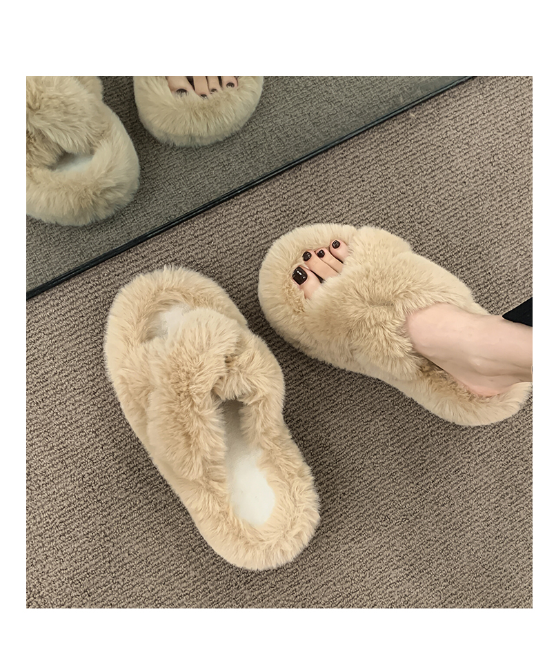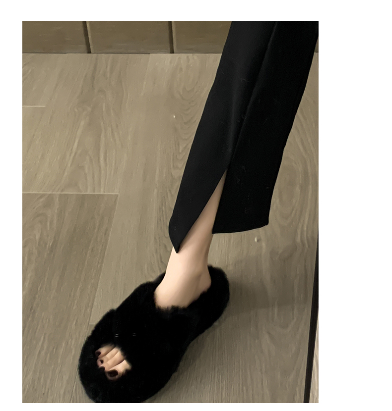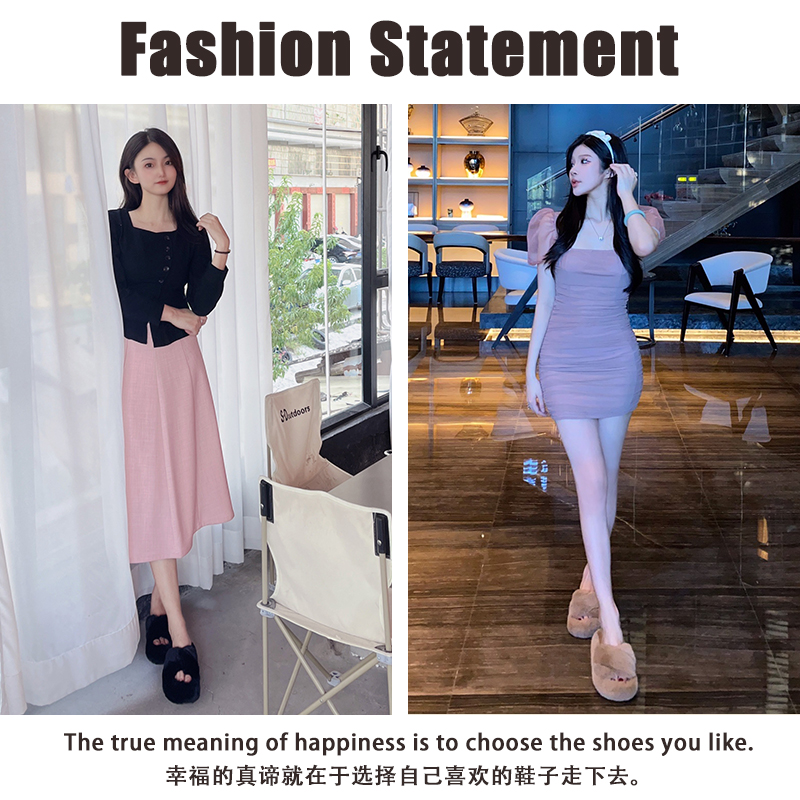Черные волосатые тапочки женщины, одетые в 2024 году осень и зимний сеть красный европейский взрыв товаров, толстое дно, высокое высокое чувство, ощущение дома плюшевые плюшевые хлопок затягивает