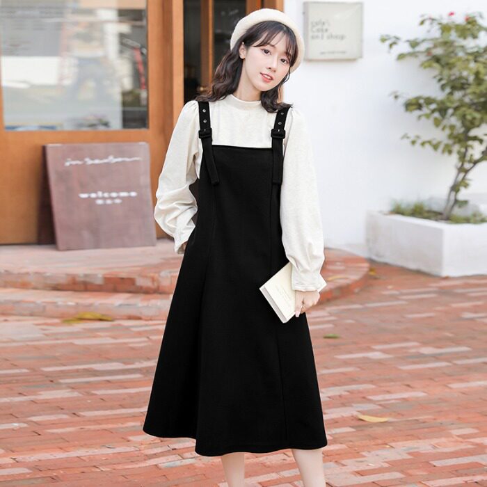 Универсальная модная длинная осенняя длинная юбка, однотонные цветные подтяжки, платье, А-силуэт, изысканный стиль