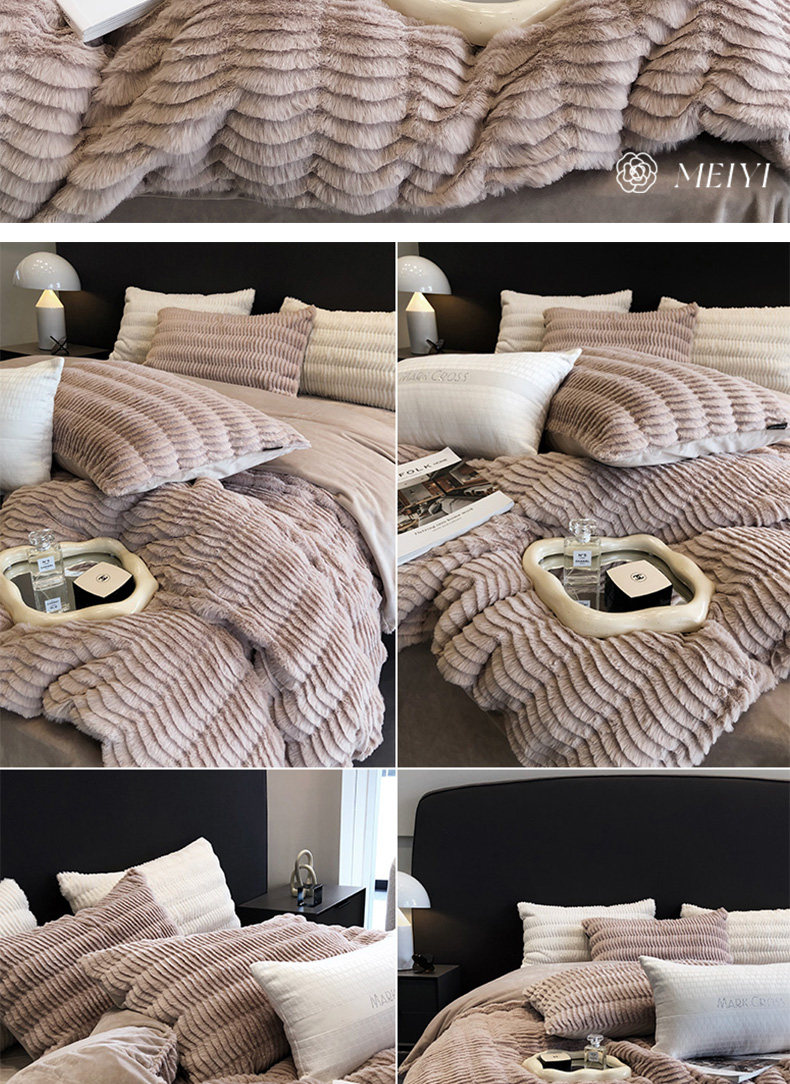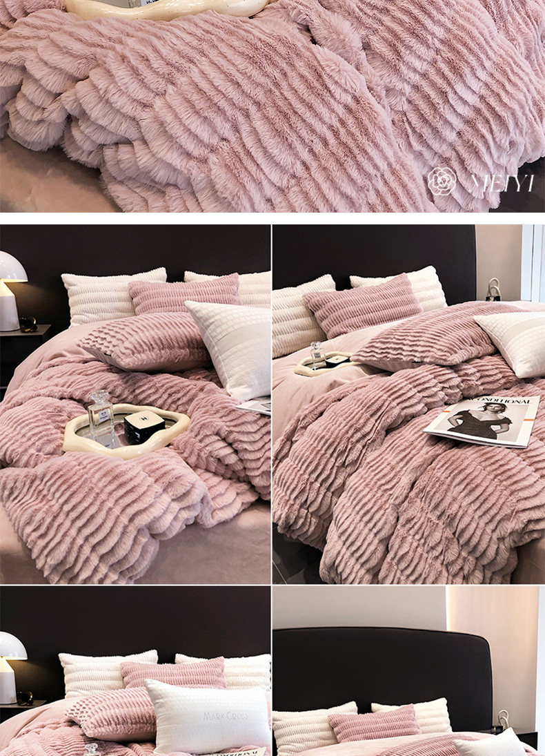 Коралловый зимний двусторонний комплект, утепленное высококлассное покрывало, 4 предмета, легкий роскошный стиль