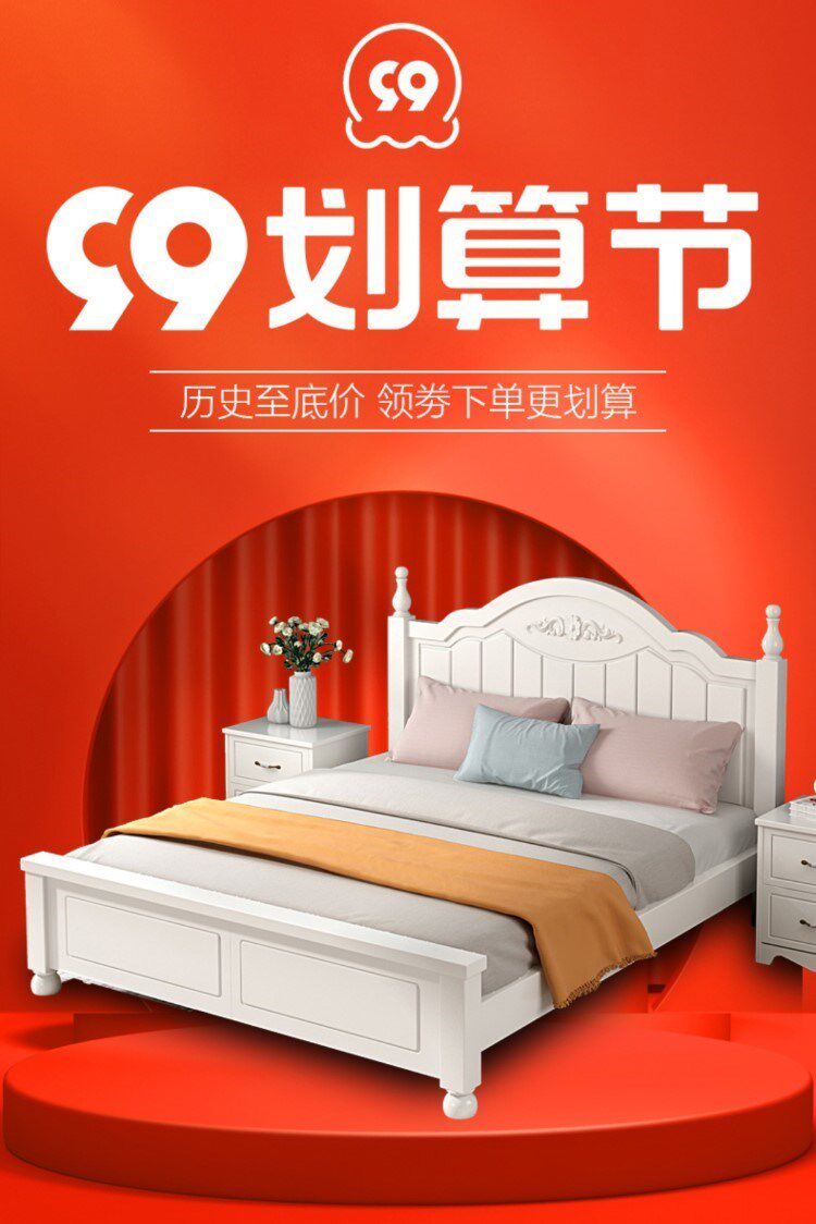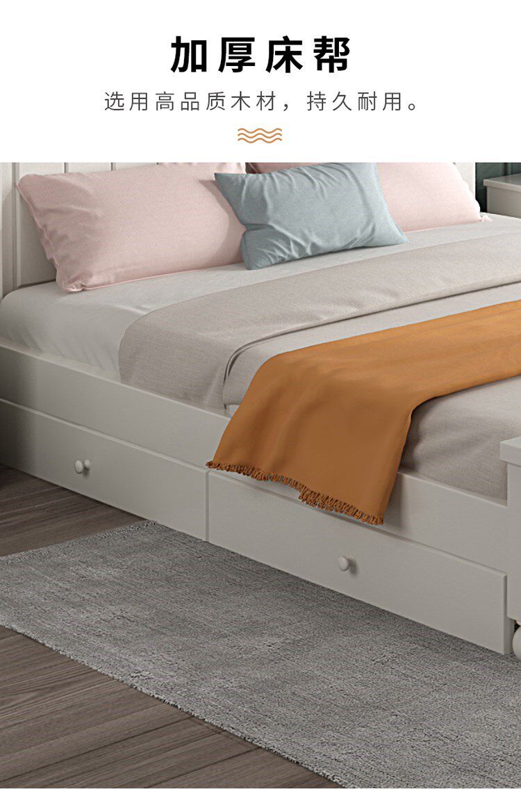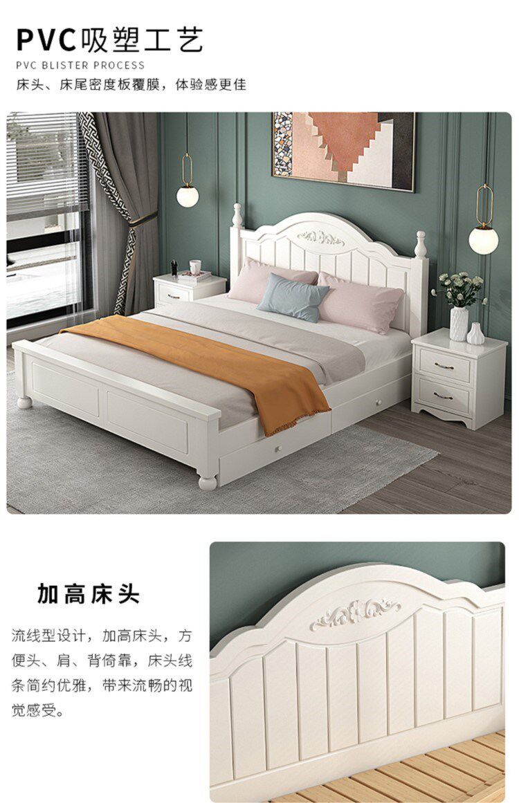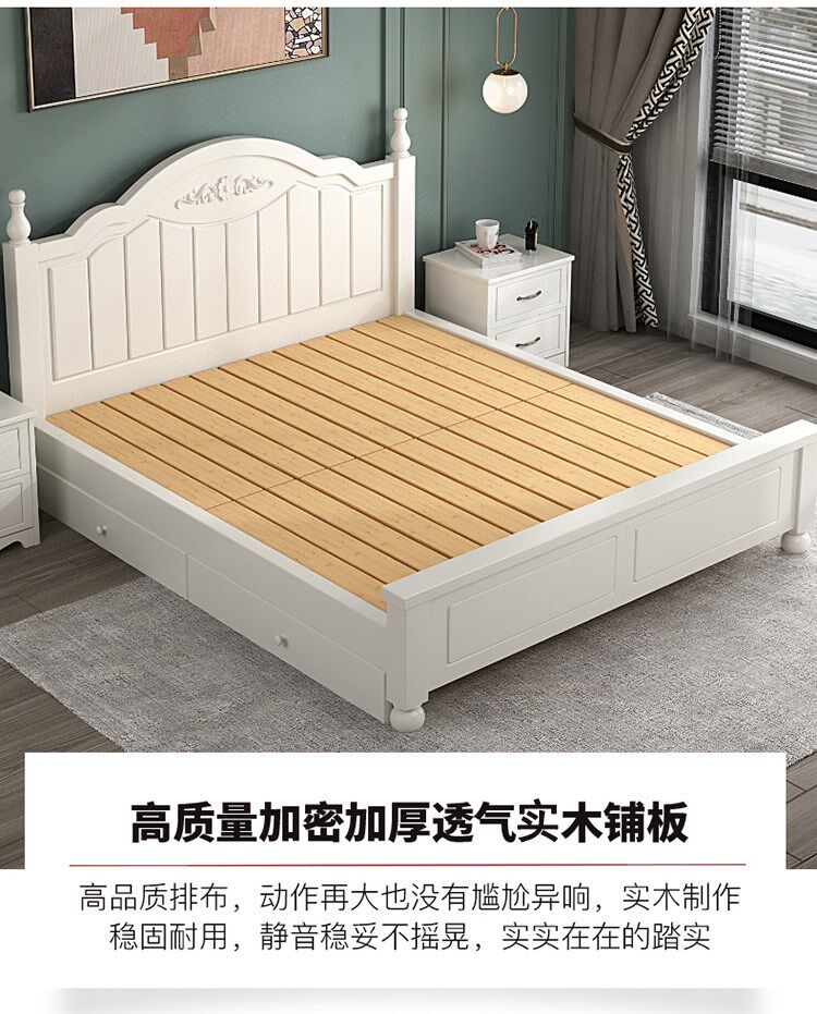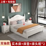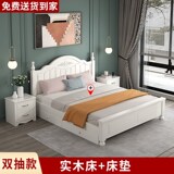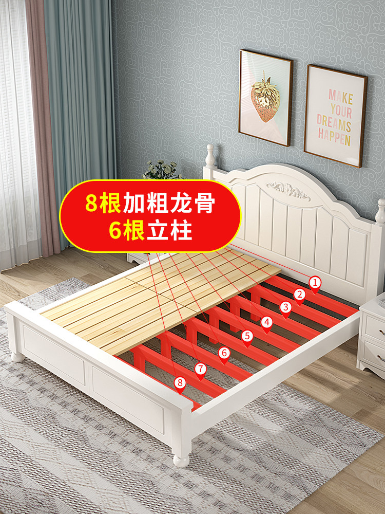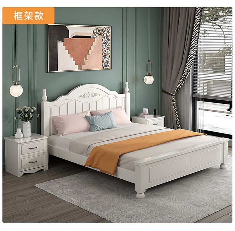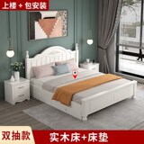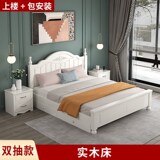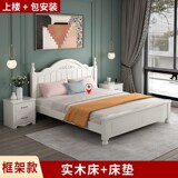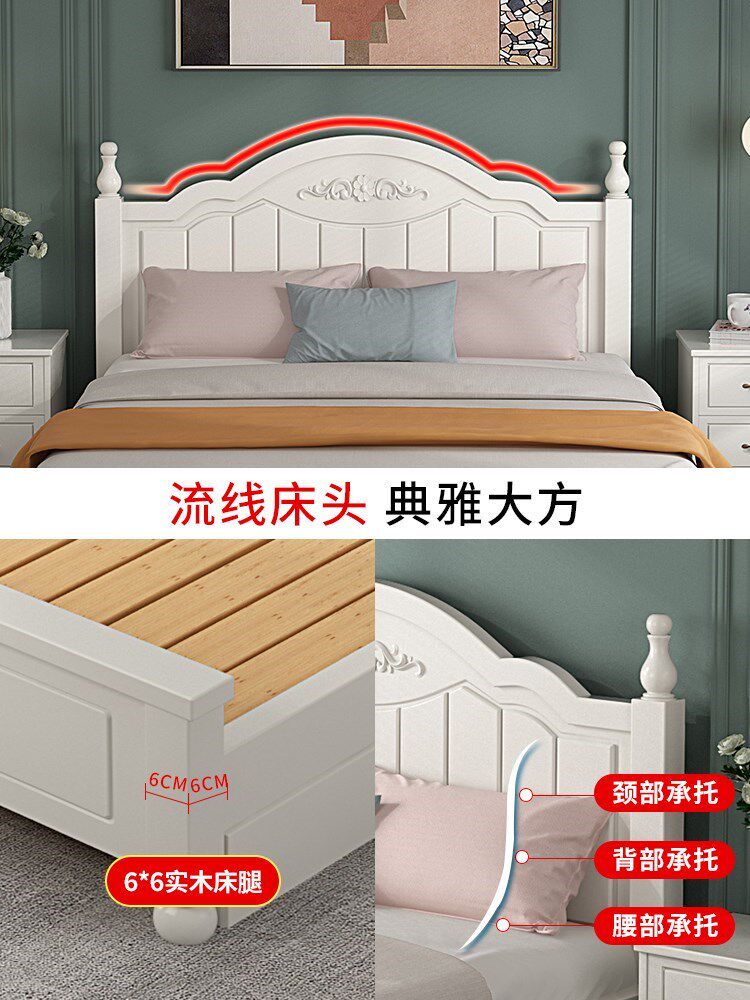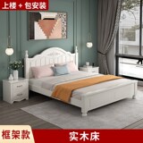 Кровать с твердым деревом современной минималистской двуспальной кровати 1,8 метра европейской кровати принцессы 1,2 м главная спальня одиночная спальня 1,5 корейская сельская местность 45
