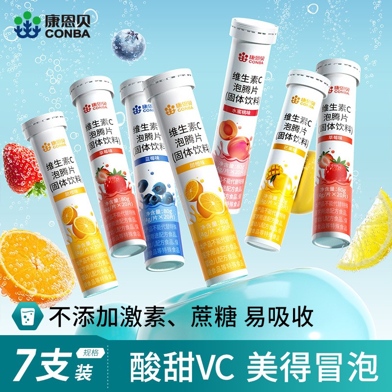 Витаминизированные шипучие таблетки, 7 шт, 140 штук, витамин C