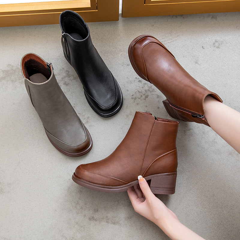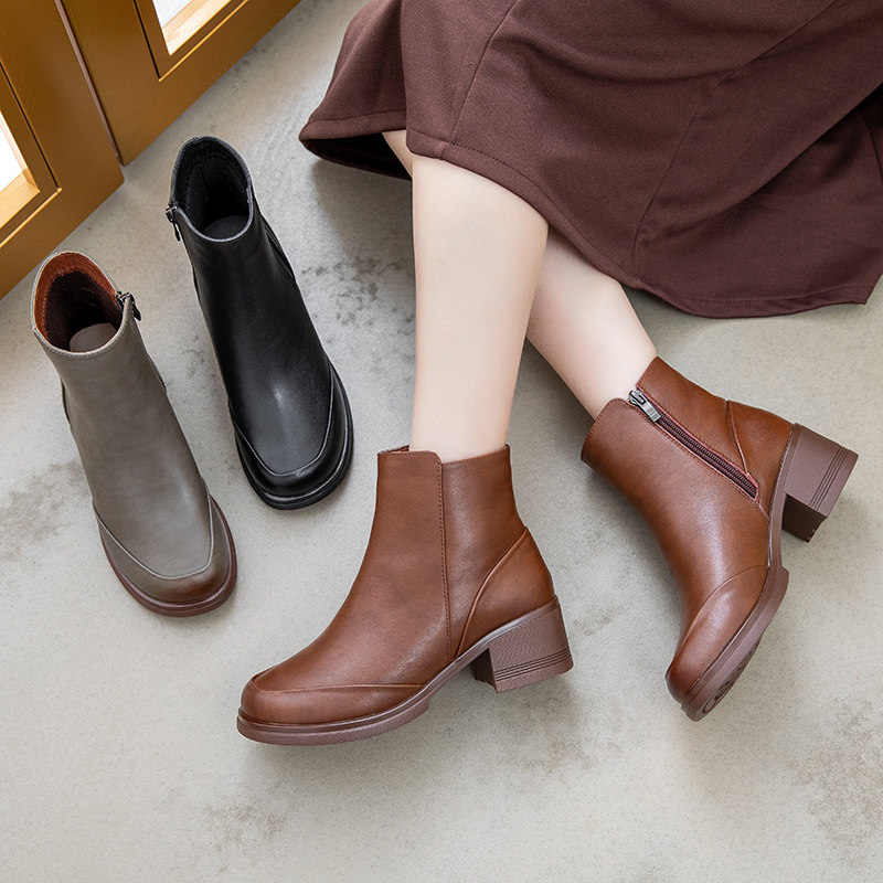 Демисезонные короткие сапоги для матери, комфортные ботинки, из натуральной кожи, для среднего возраста, мягкая подошва
