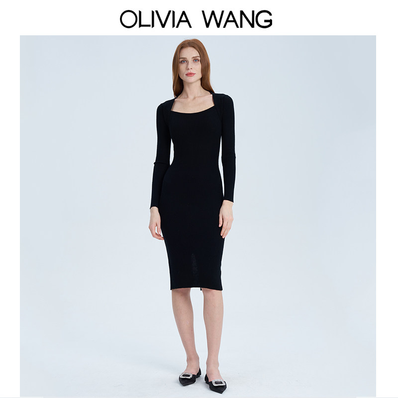 Элегантное шерстяное базовое трикотажное платье, французский стиль, квадратный вырез