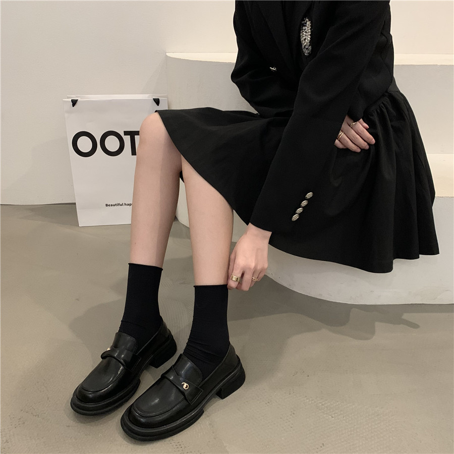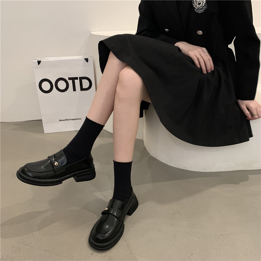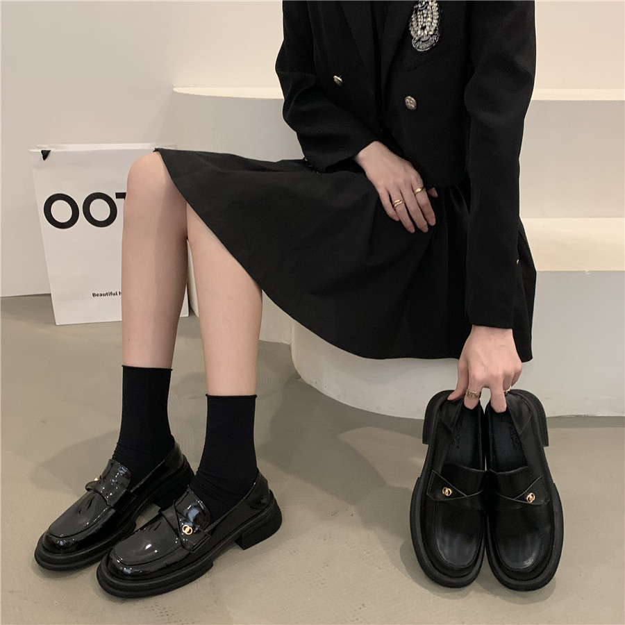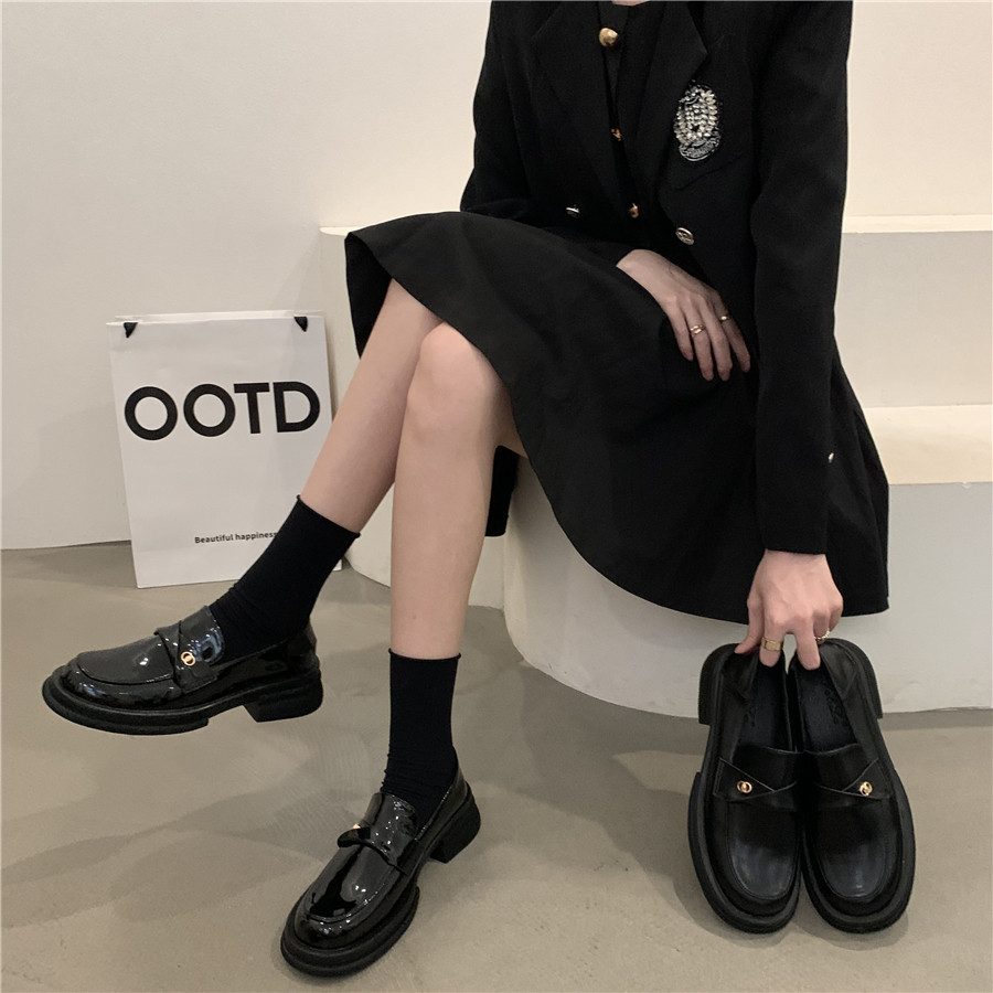 Обувь в английском стиле для кожаной обуви на платформе, осенняя подходит с юбкой, универсальные черные лоферы, в британском стиле, в корейском стиле, французский стиль