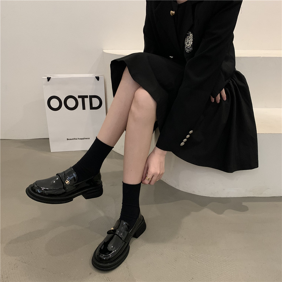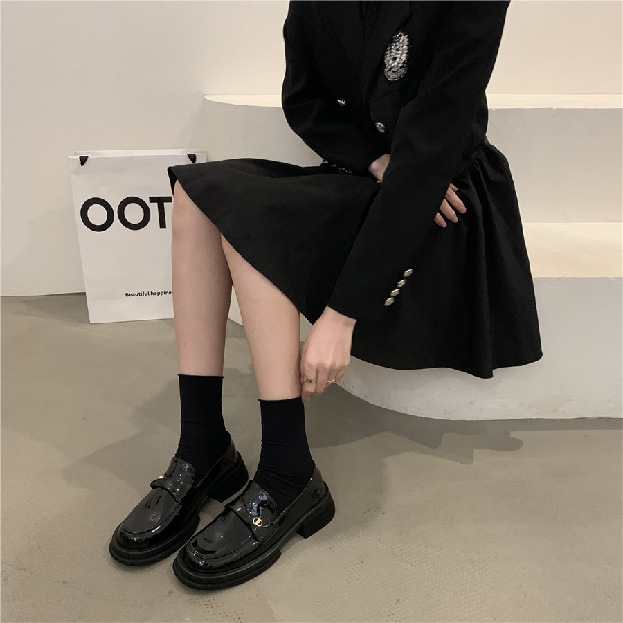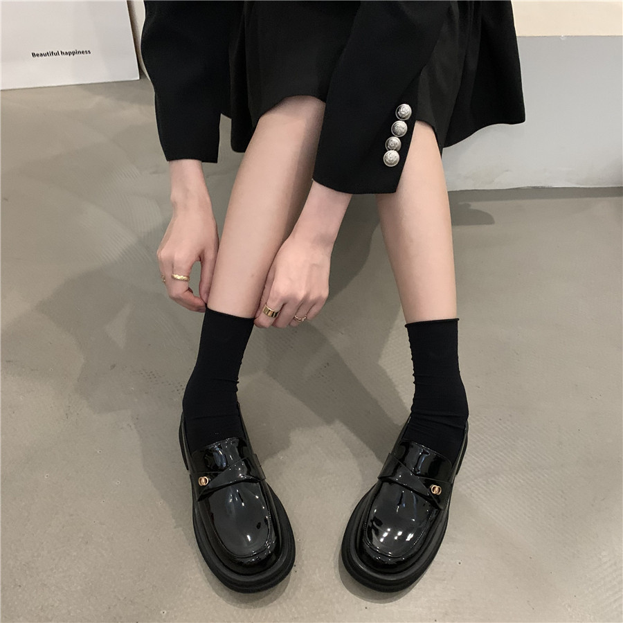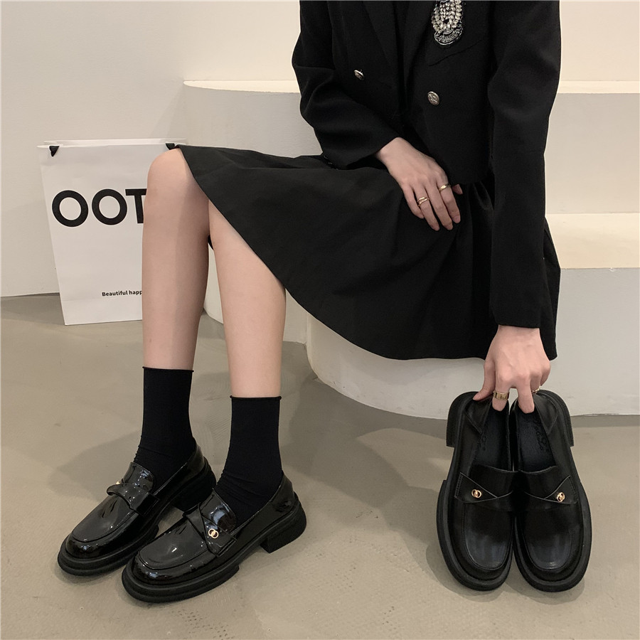 Обувь в английском стиле для кожаной обуви на платформе, осенняя подходит с юбкой, универсальные черные лоферы, в британском стиле, в корейском стиле, французский стиль