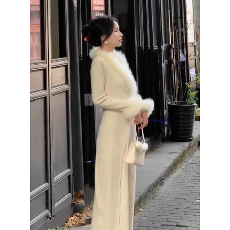 Ретро платье, трикотажная длинная юбка, французский стиль, изысканный стиль