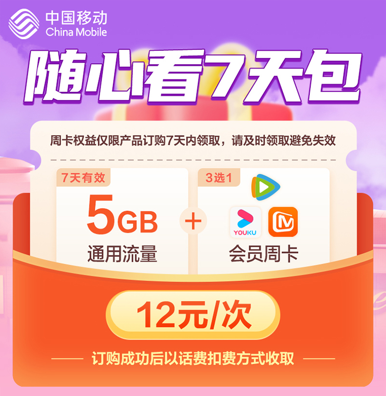 Китайский мобильный трафик перезарядка за 7 дней 5G Пакет дорожного движения.