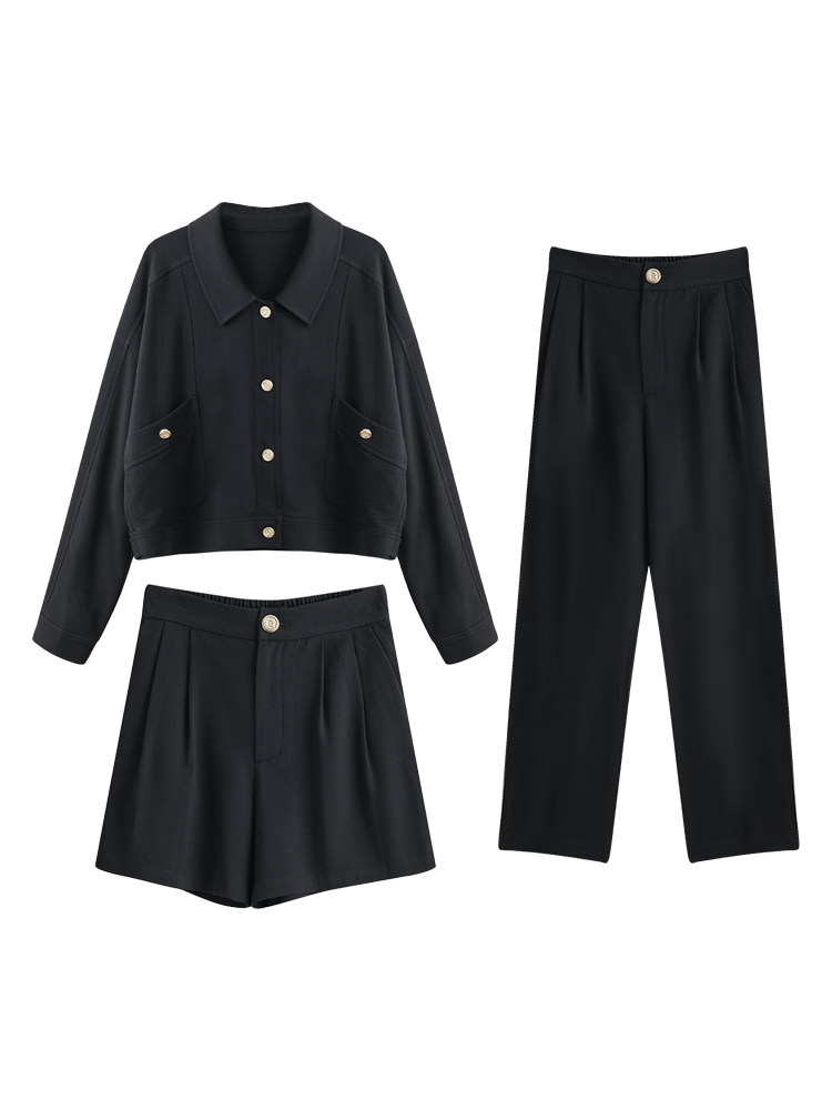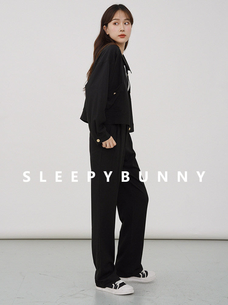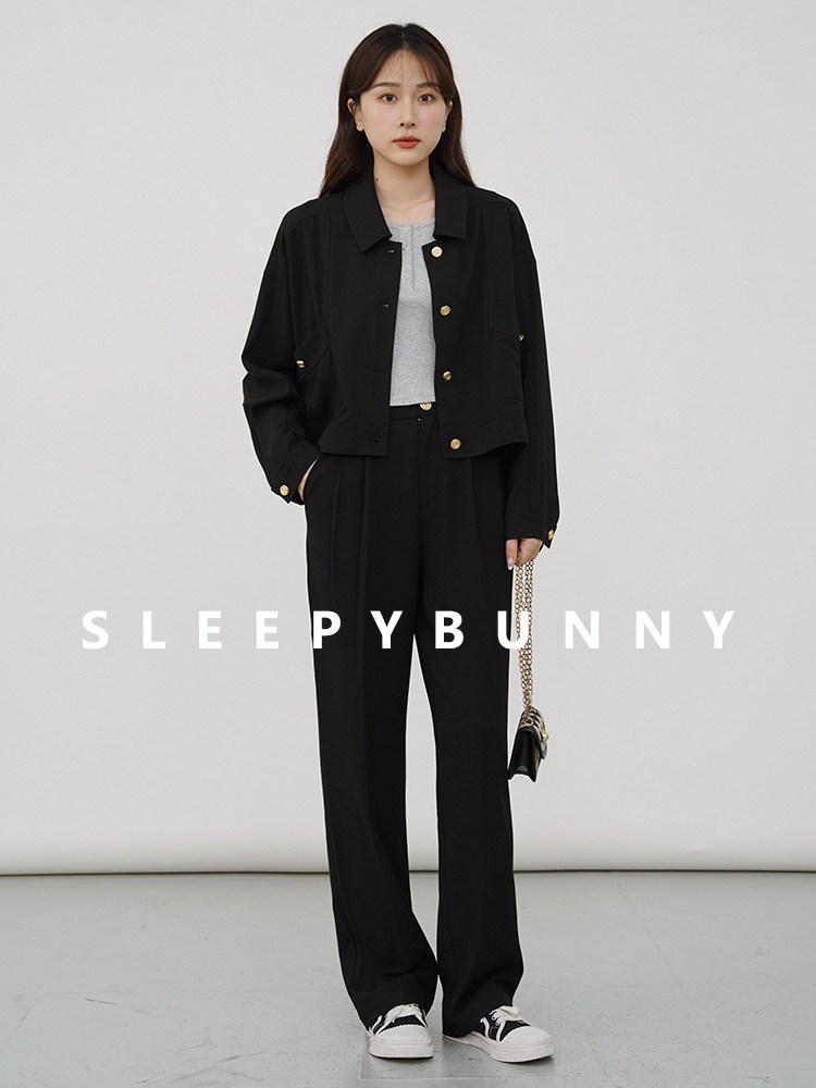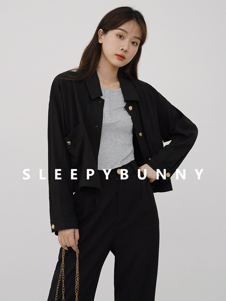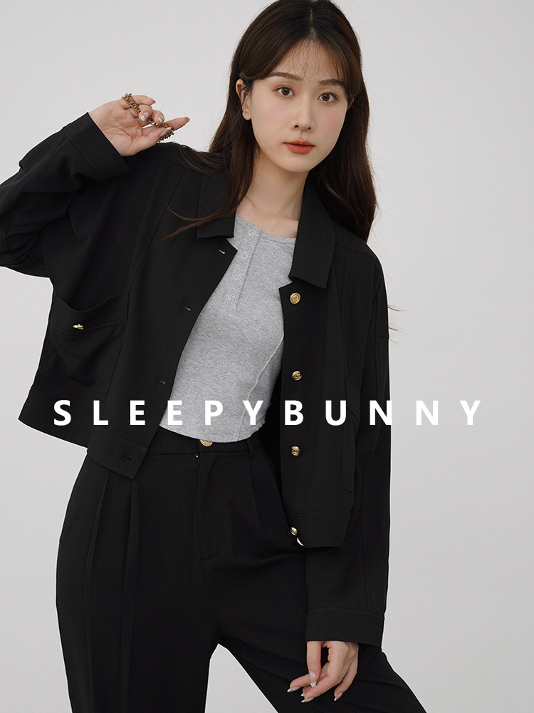 瞌睡兔 Черная короткая куртка, осенний милый свежий комплект, подходит для подростков, городской стиль, свободный крой