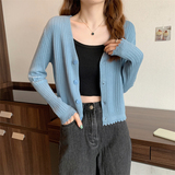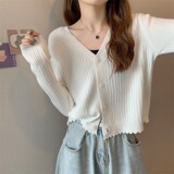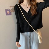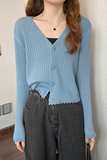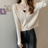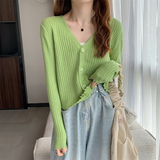 Брендовый трикотажный кардиган, базовая приятная телу осенняя утепленный лонгслив, V-образный вырез