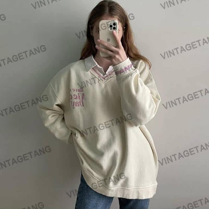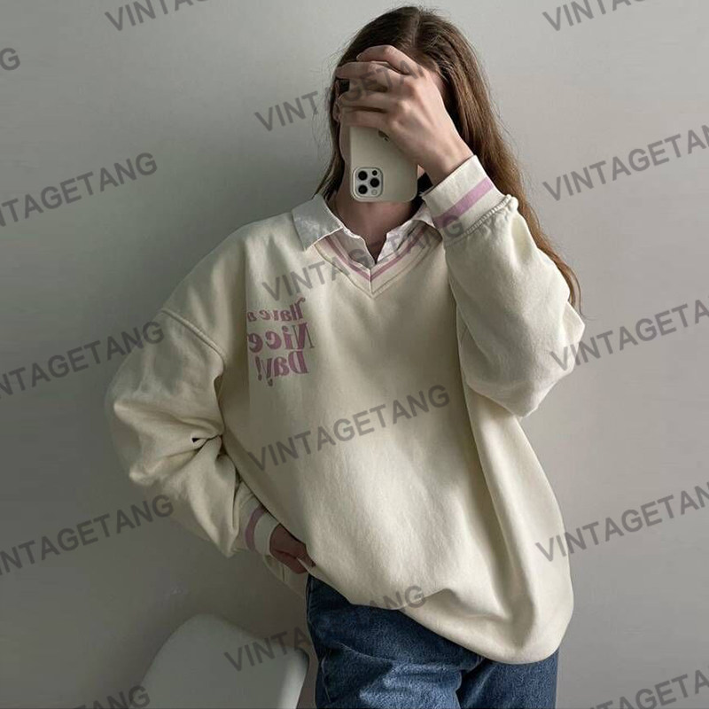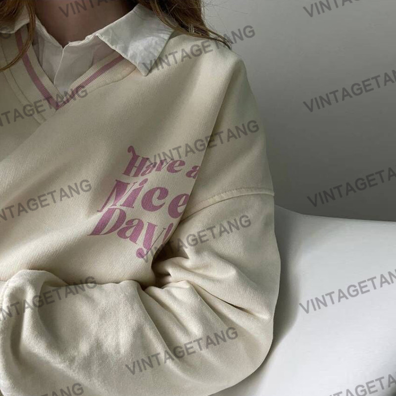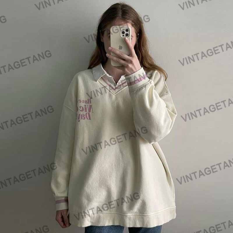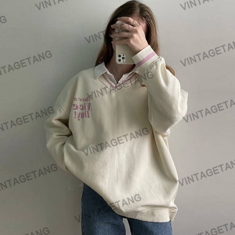 Tide, ретро бежевая толстовка, в американском стиле, оверсайз