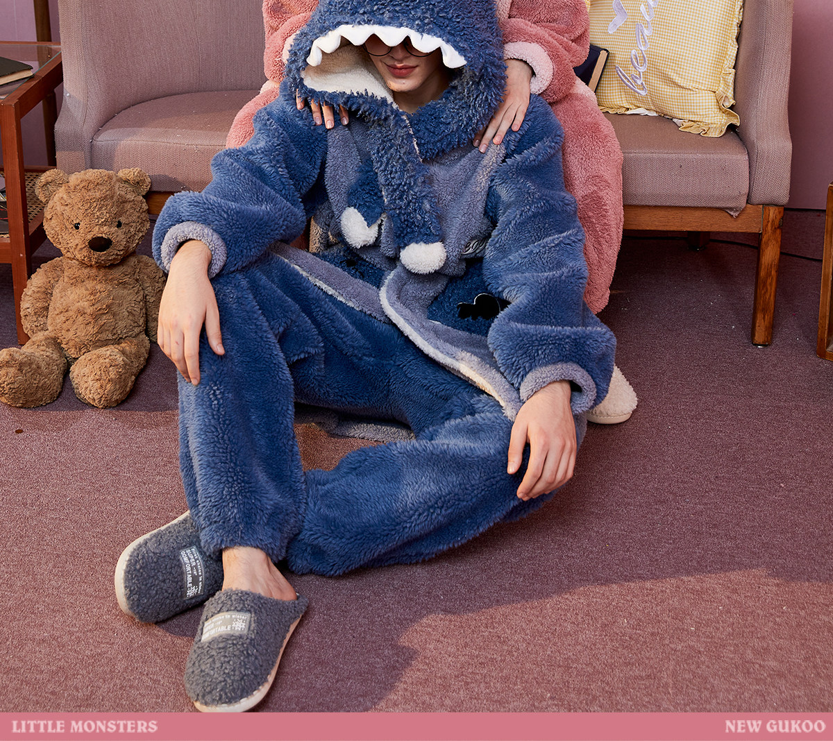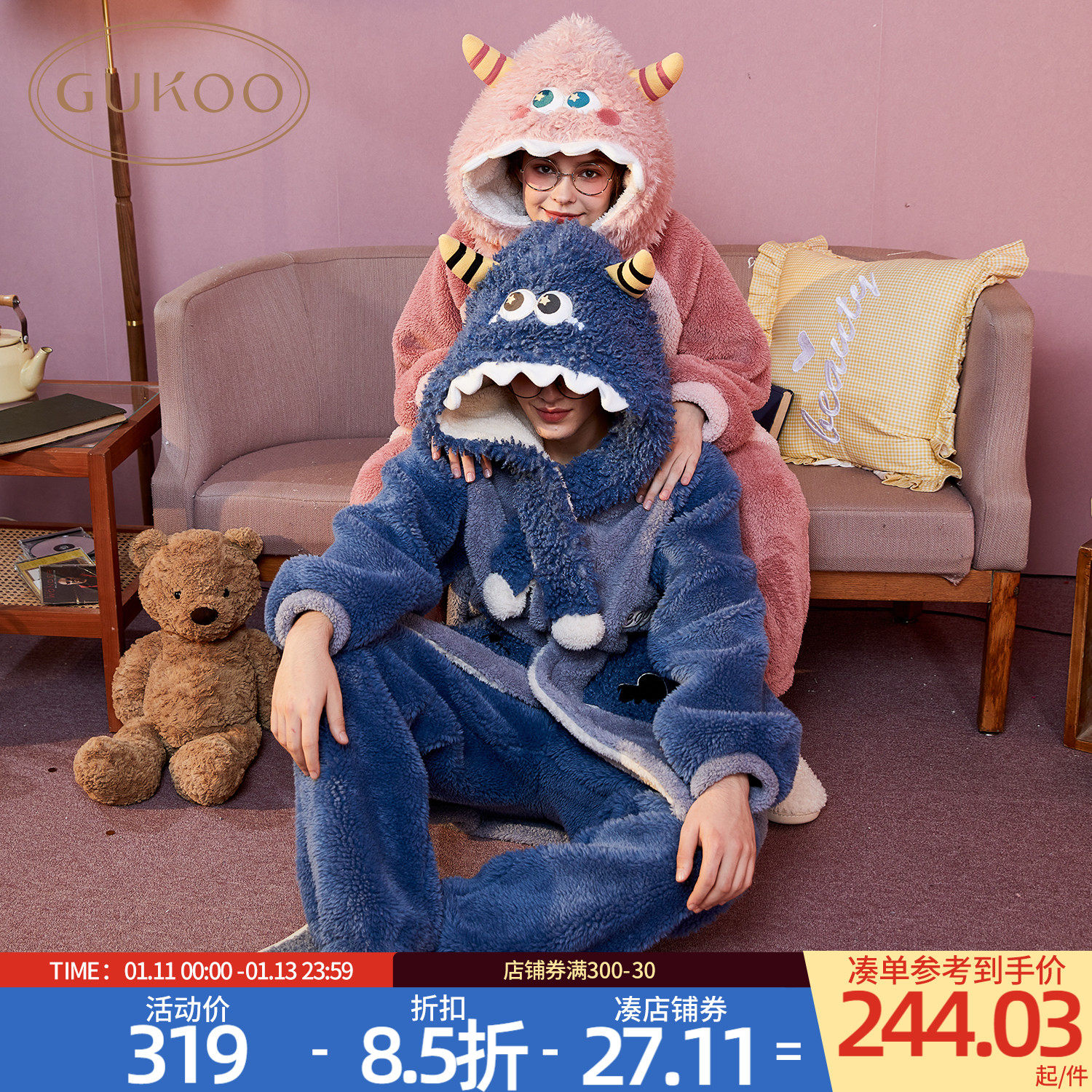 Пижама для влюбленных, зимний монстр, коралловый бархатный комплект