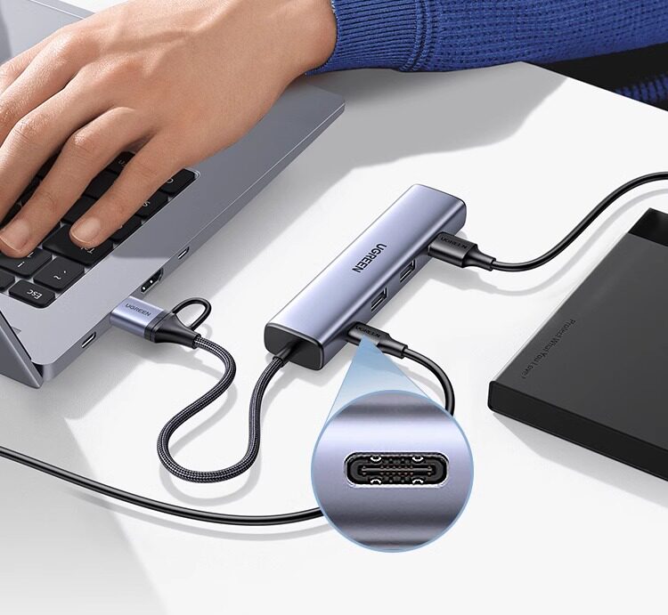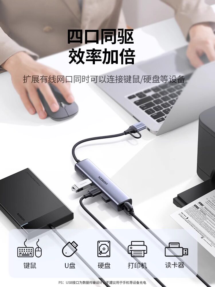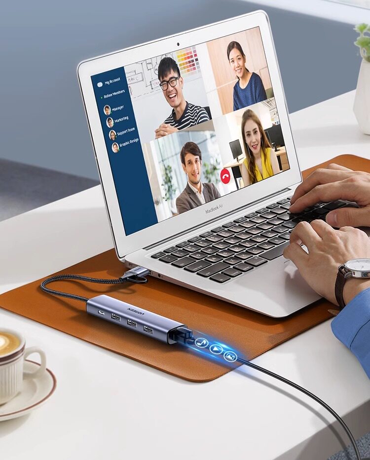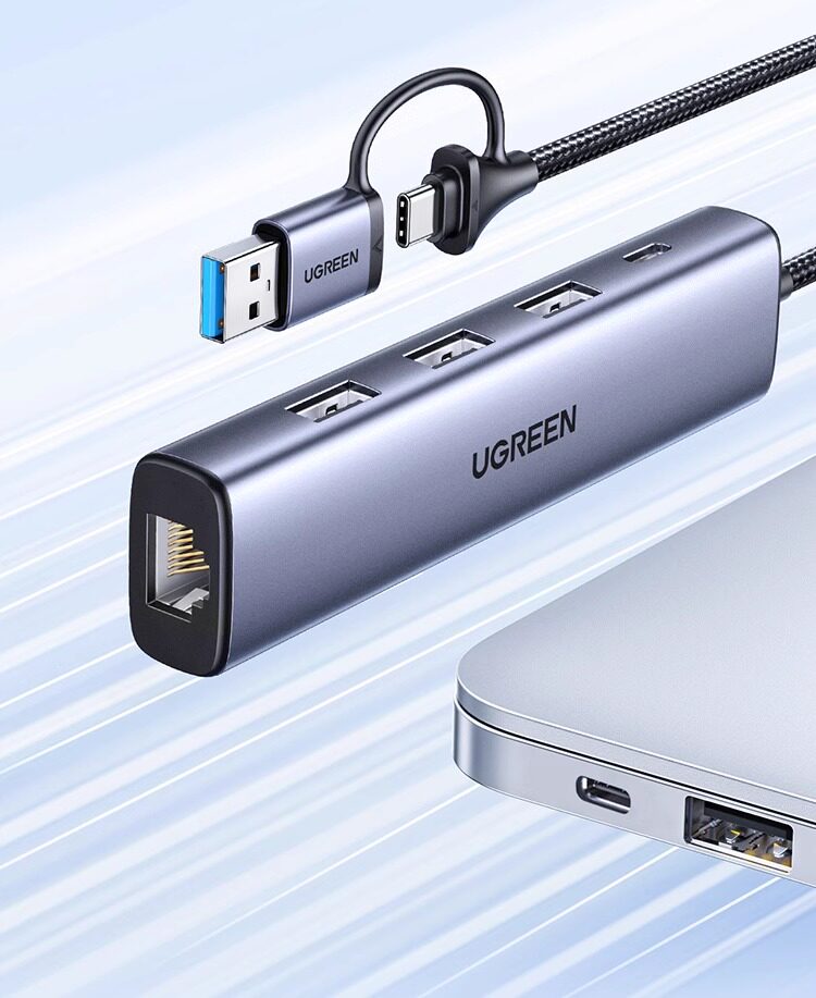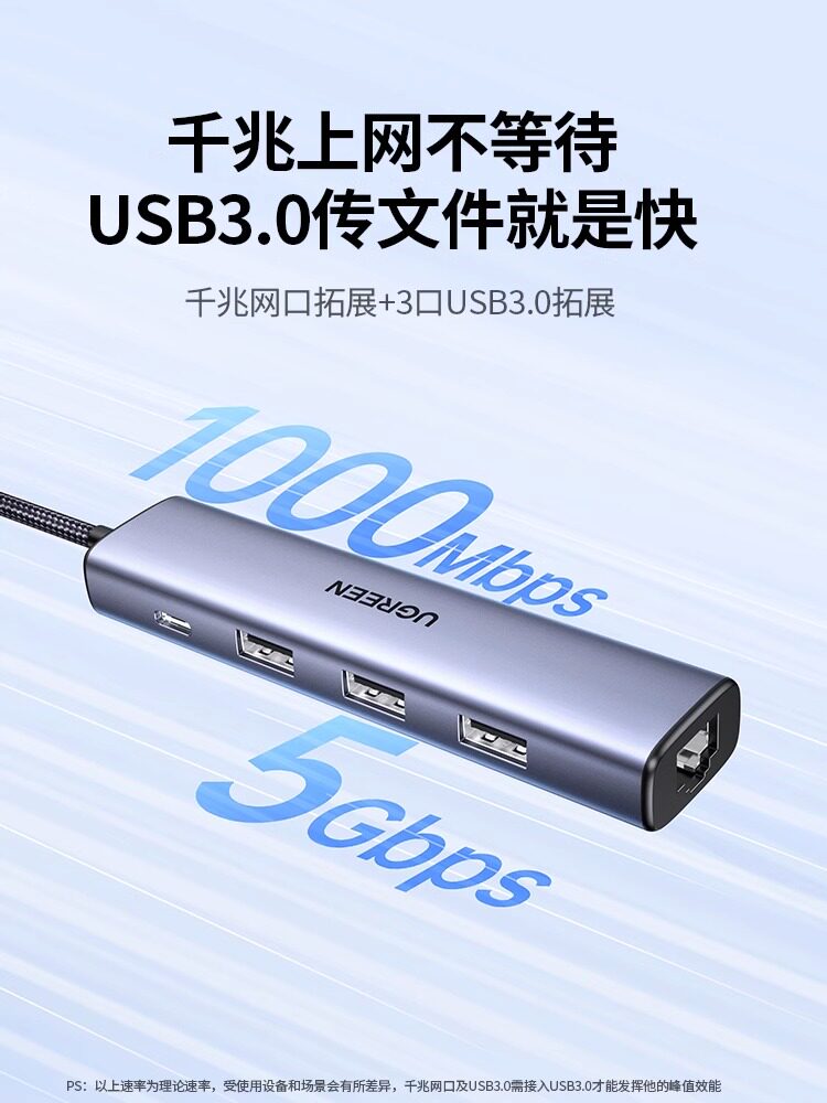 Интерфейс передачи зеленого сетевого кабеля USB-порт для преобразования порта Ethernet Подключение док-станции Гигабитная проводная сетевая карта Расширение широкополосной сети, подходящий для ноутбуков Mac Nas
