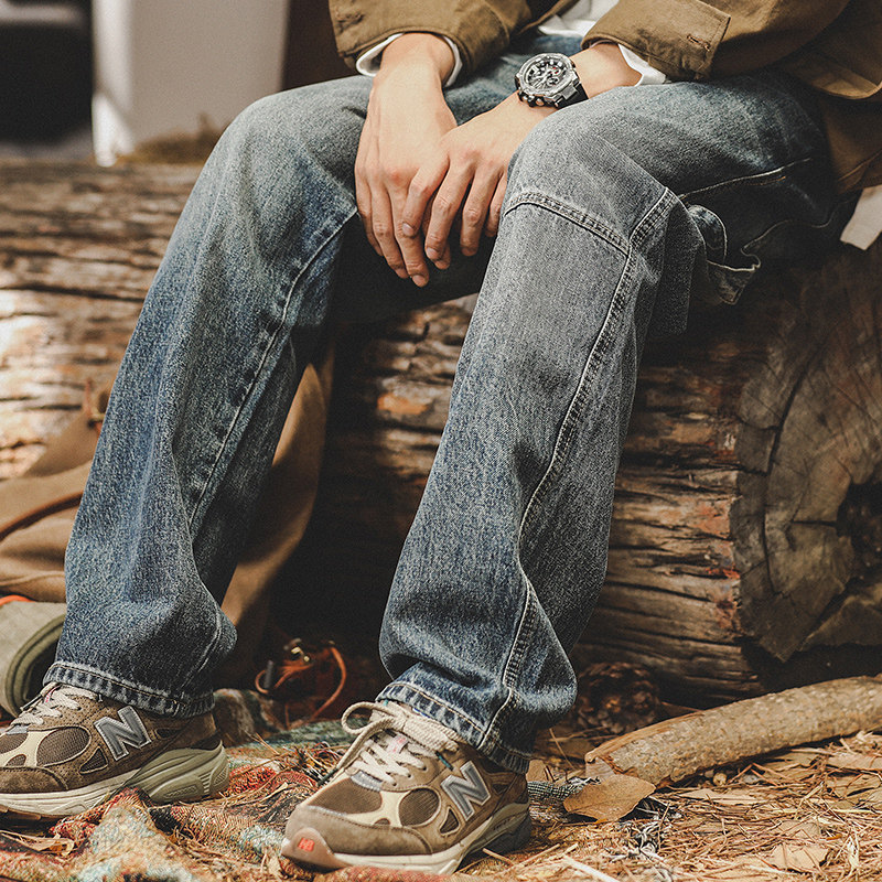 Ретро прямые свободные джинсы, демисезонные штаны, в американском стиле, большой размер