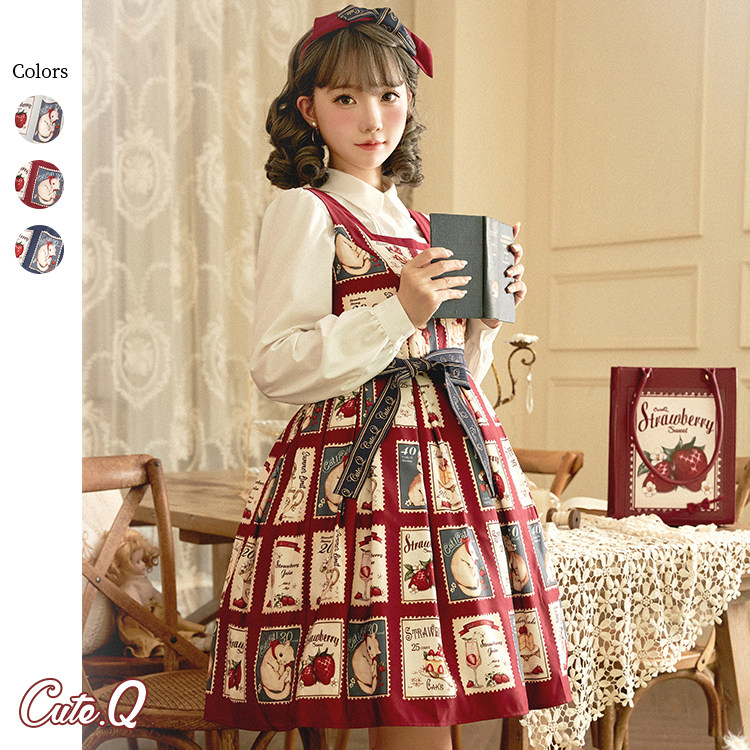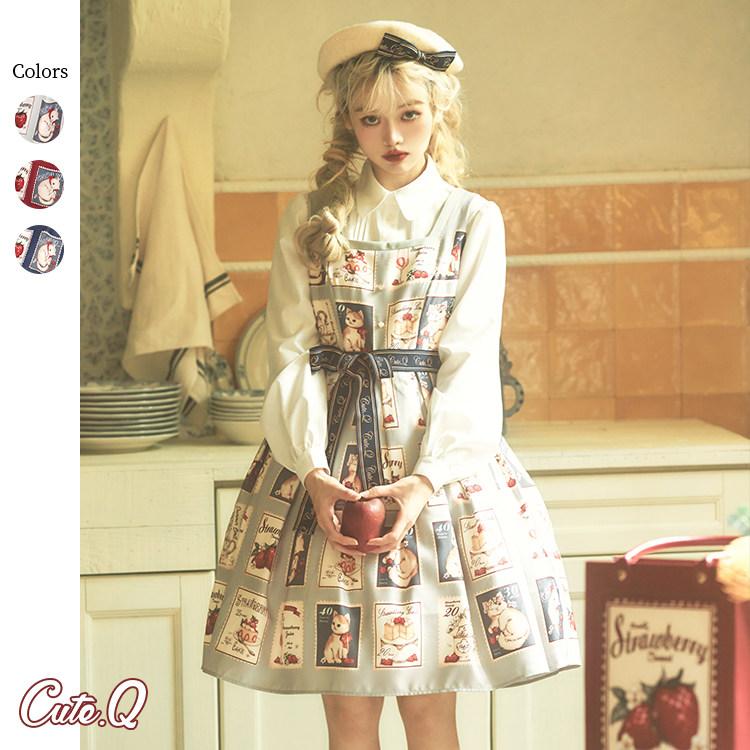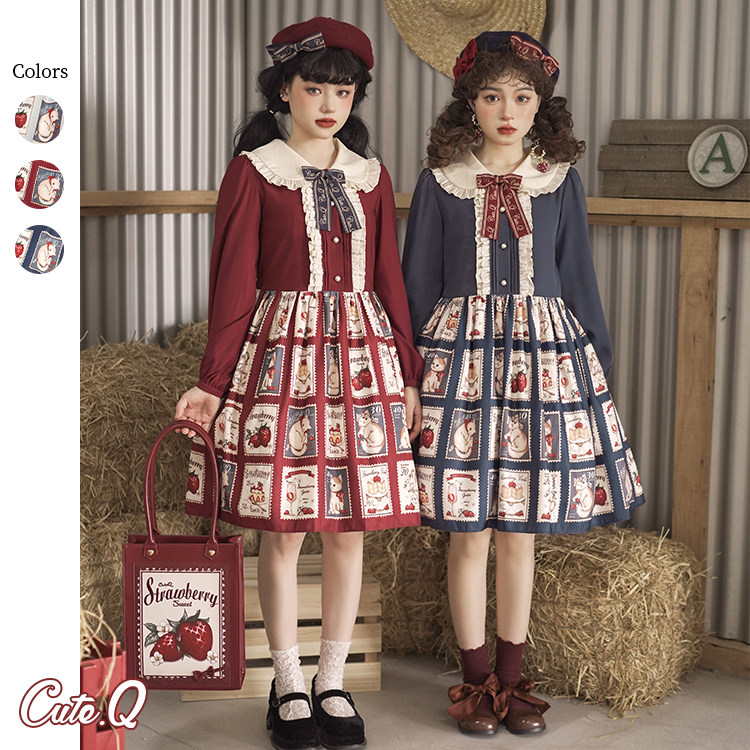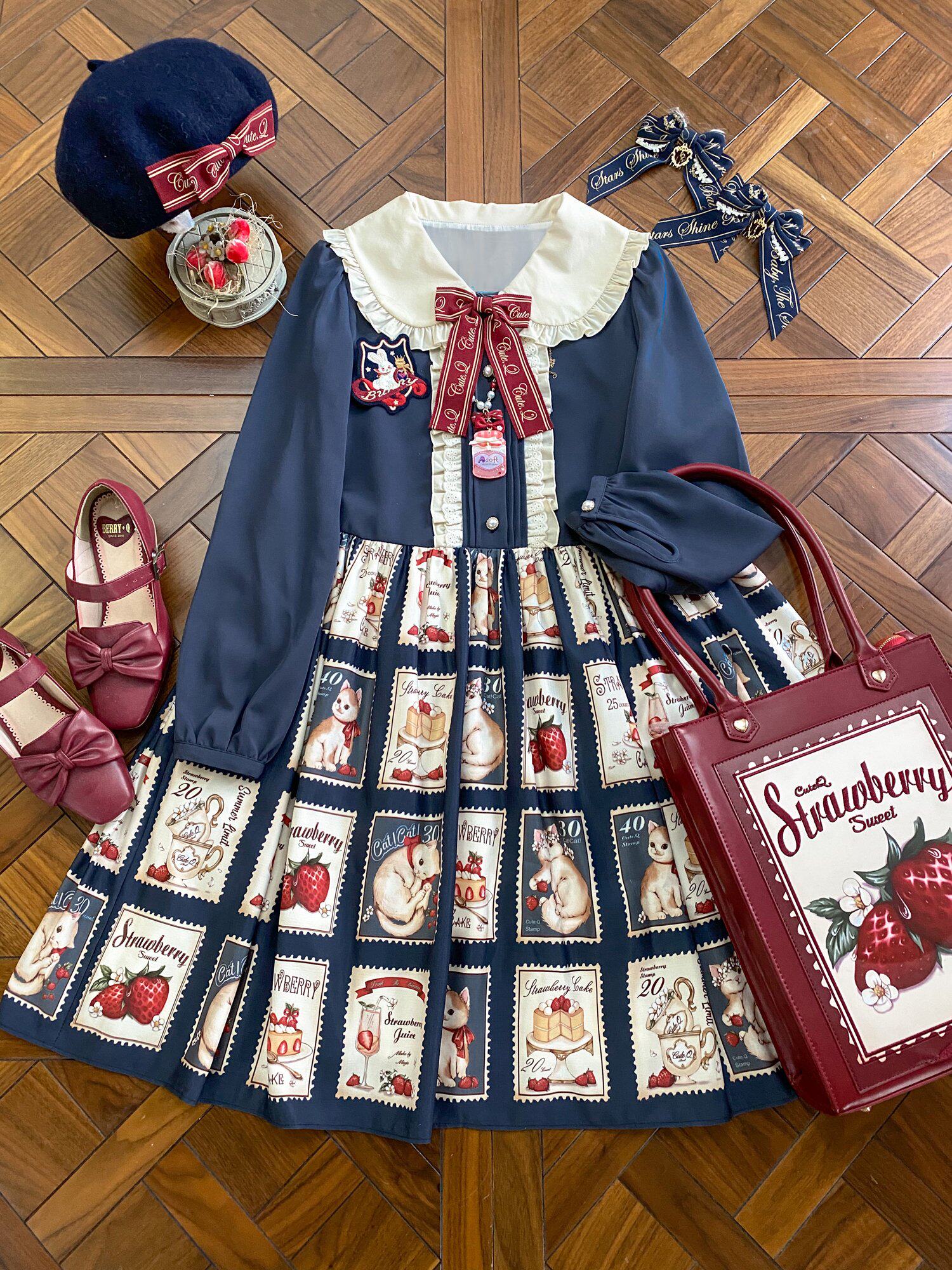 Клубника, марки, ретро платье, Lolita OP, Lolita Jsk, кот, стиль Лолита
