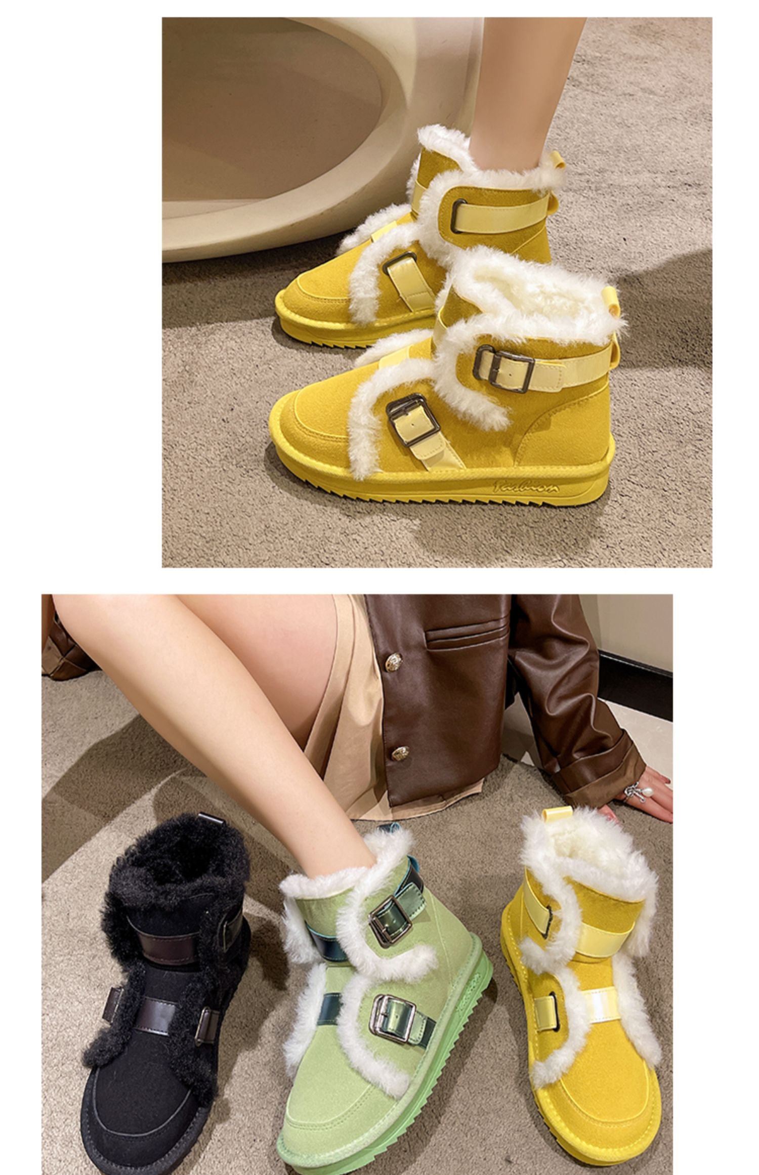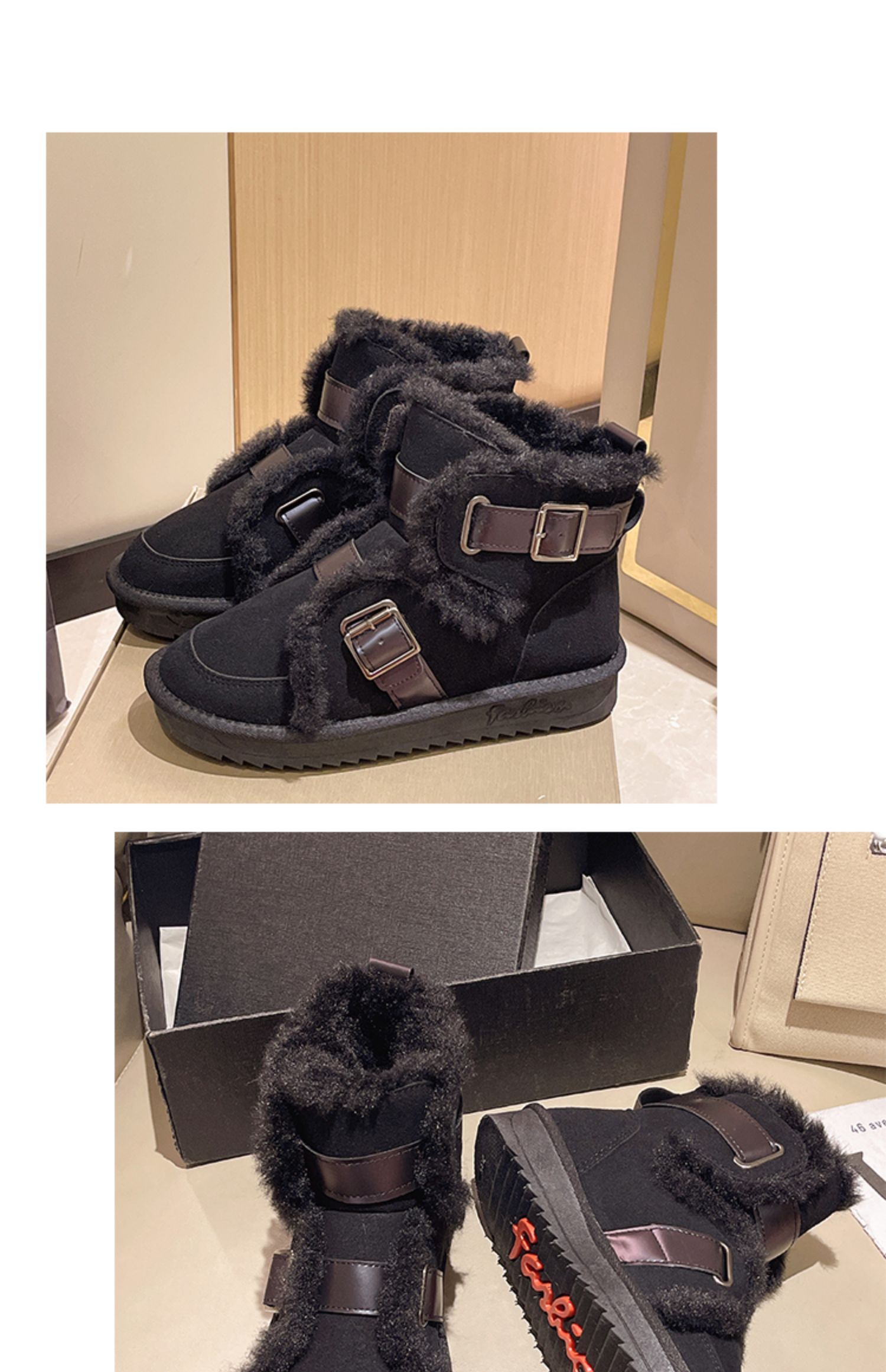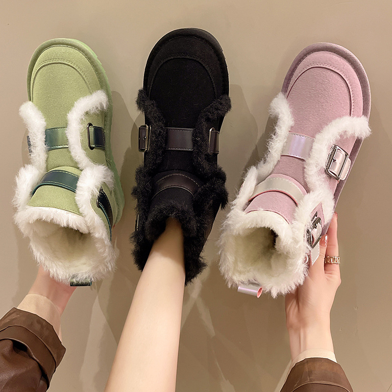 Зимние сапоги, утепленные туфли, ремень, пряжка, нескользящие ботинки