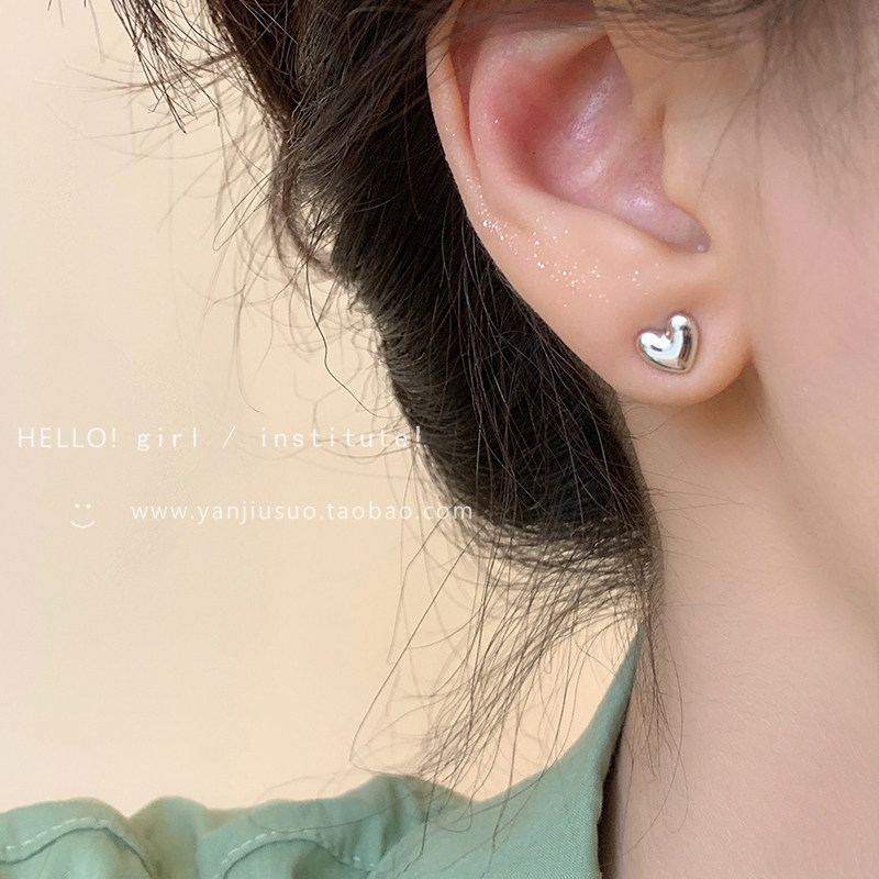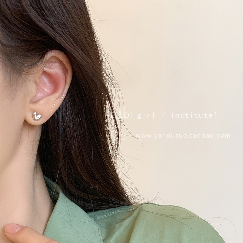 Серебряные маленькие изысканные небольшие дизайнерские серьги в виде сердечка в форме сердца, простой и элегантный дизайн, тренд сезона