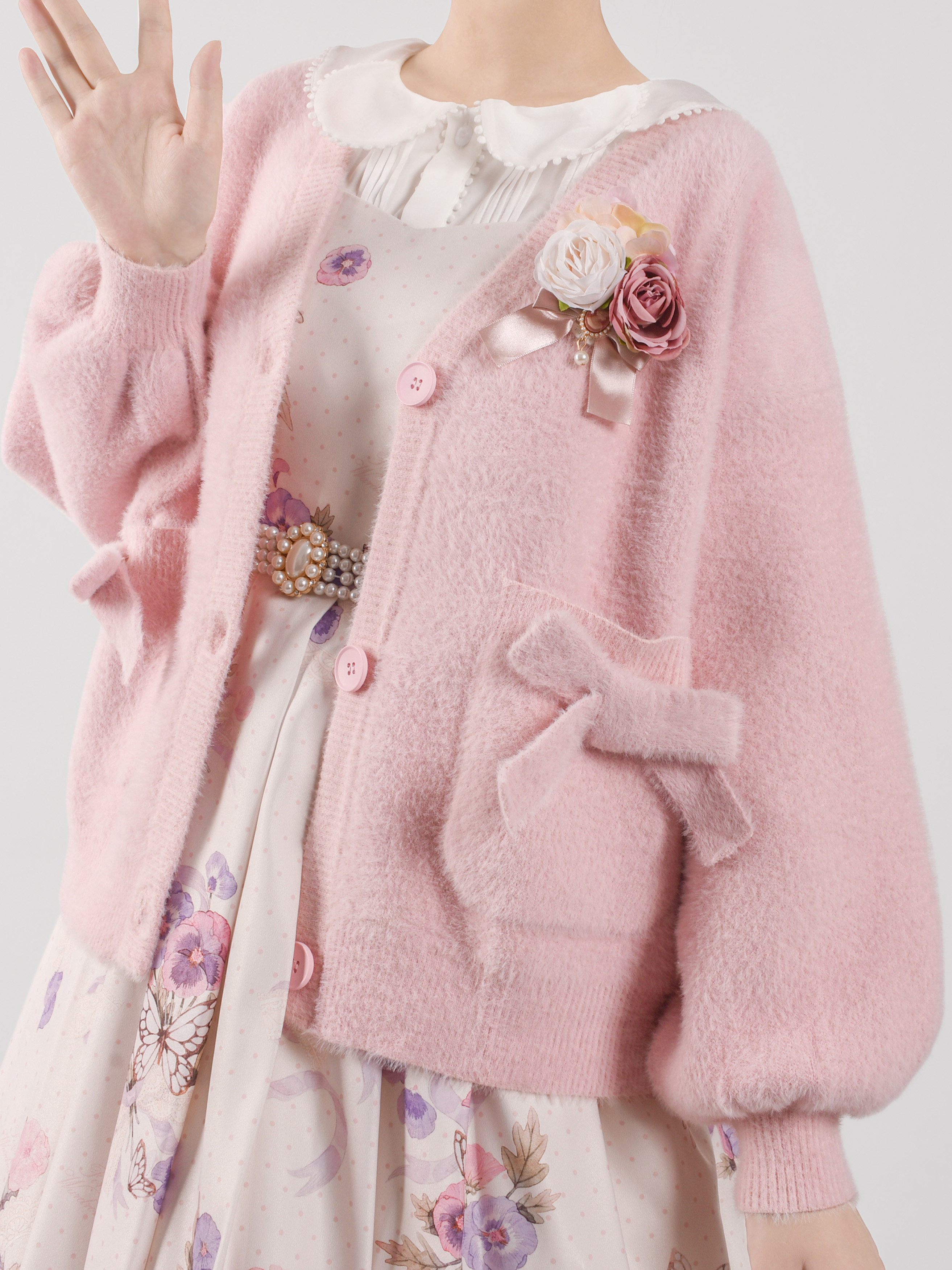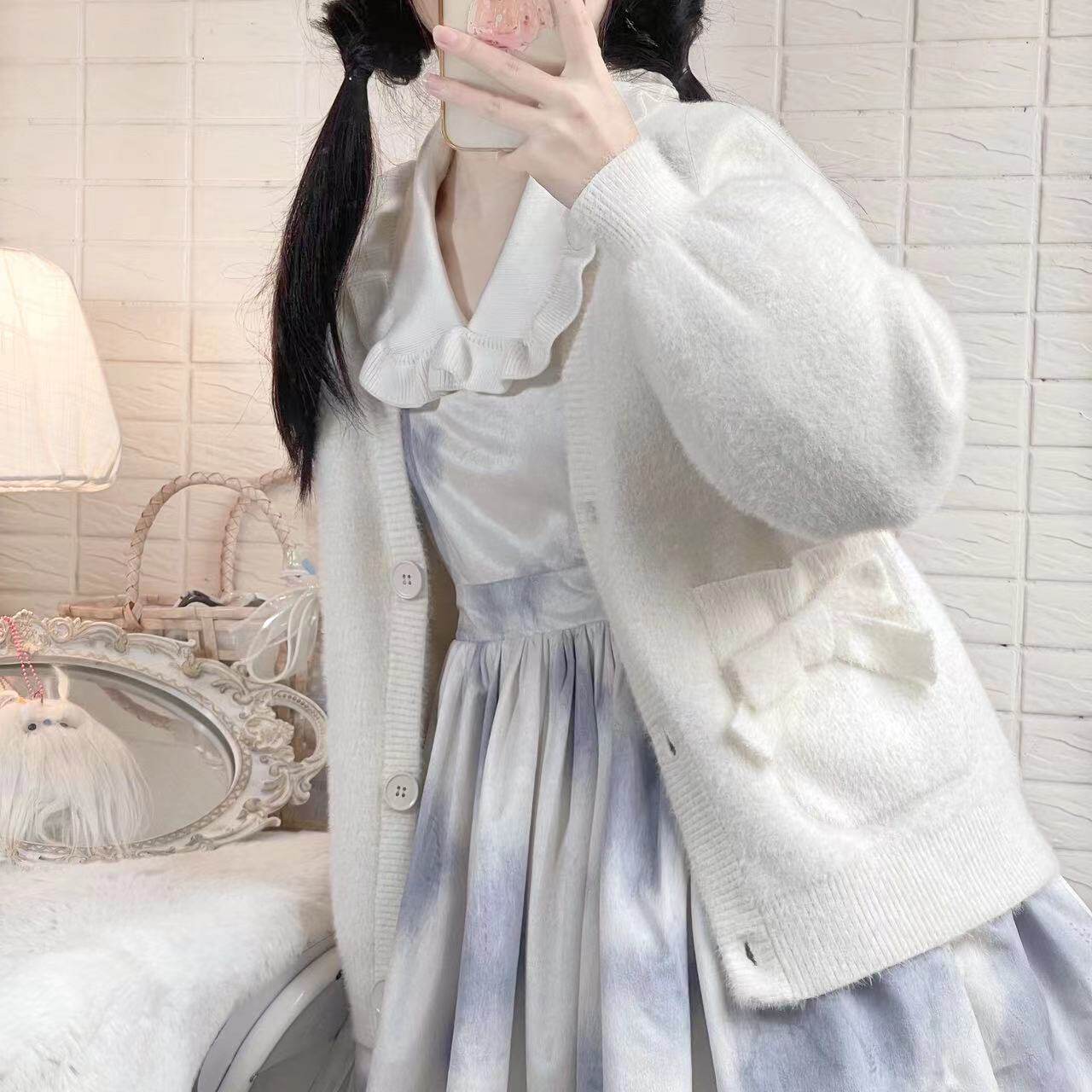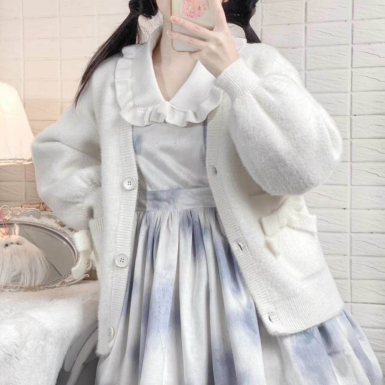 Бархатный короткий кардиган, трикотажный свитер, демисезонная куртка, удерживающий тепло лонгслив, стиль Лолита, подходит для подростков