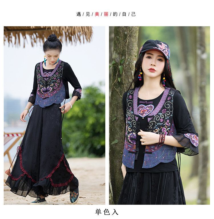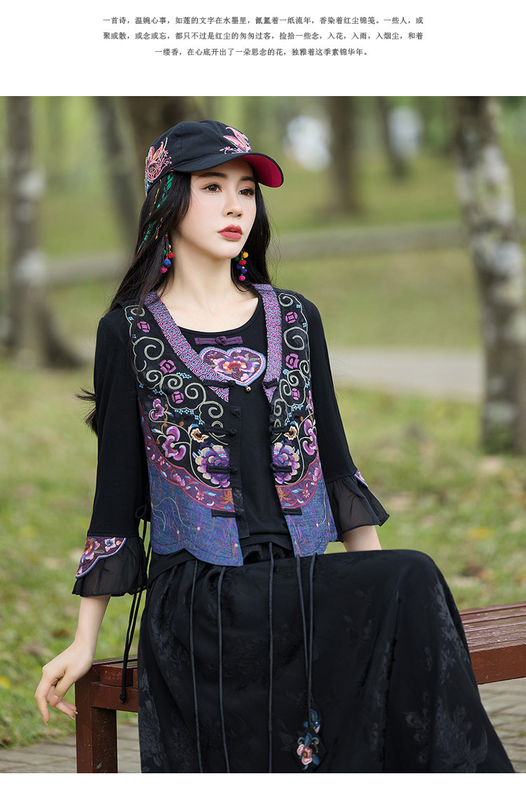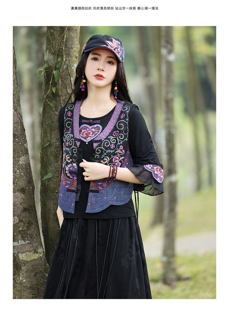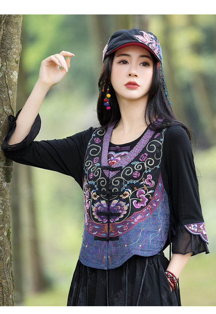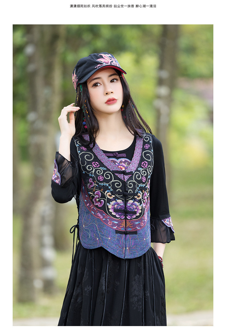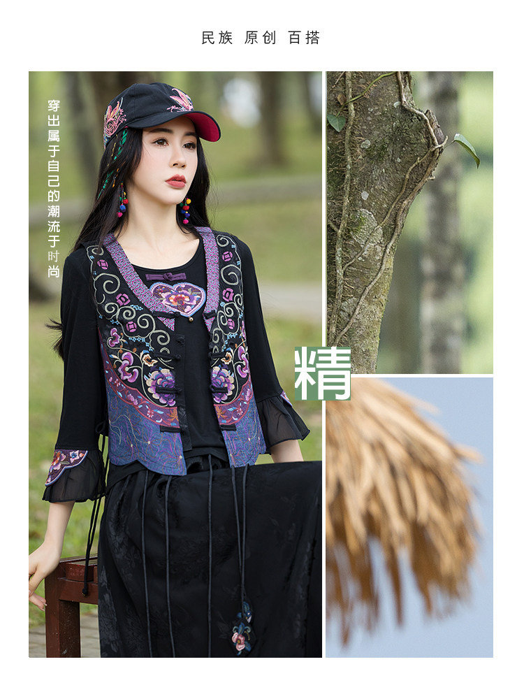 Новая женская национальная вышивка цветы, лепестки веревки, контрастные цвета, личностные самолеты, атласный жилет